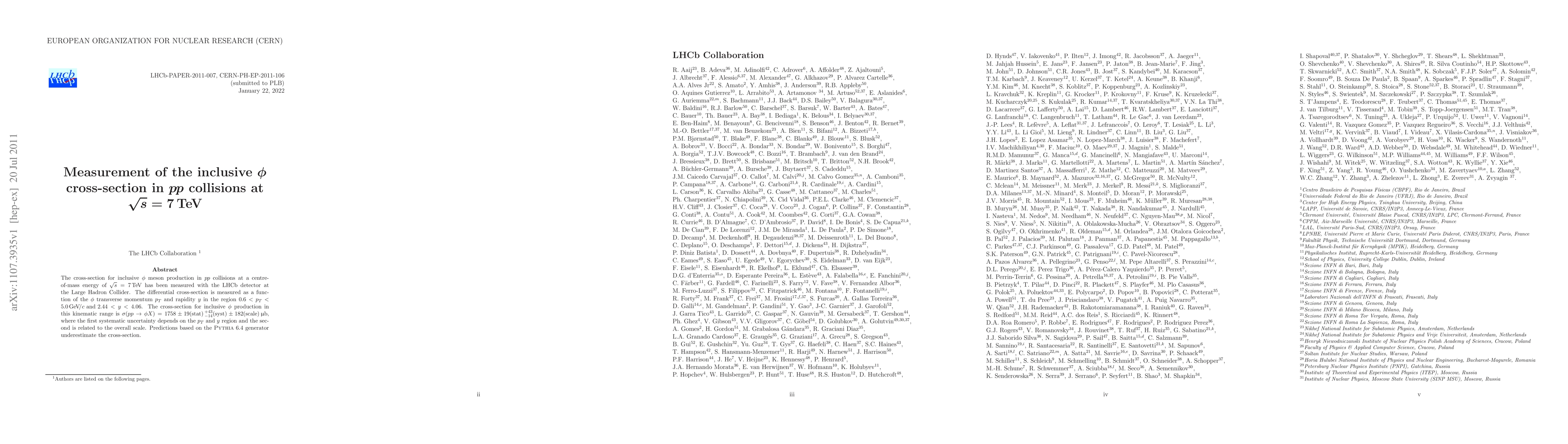 The LHCb detector measured the inclusive phi meson production cross-section in pp collisions at sqrt(s) = 7 TeV, finding it to be 1758 ± 19(stat) ± 43(syst) ± 182(scale) microbarn. Predictions from the Pythia 6.4 generator fall short of the measured cross-section.