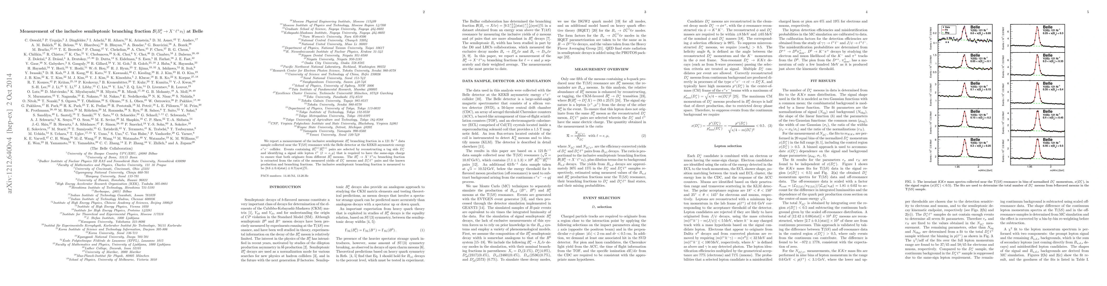 The Belle experiment measured the inclusive semileptonic branching fraction of $B_s^0$ mesons to be $[9.6 \pm 0.4\text{(stat)} \pm 0.7\text{(syst)}]~\%$ using a $121~fb^{-1}$ data sample collected near the $\Upsilon(5S)$ resonance. The measurement was derived from the ratio of $D_s^+$ mesons and $D_s^+ \ell^+$ pairs in $B_s^0$ pairs.