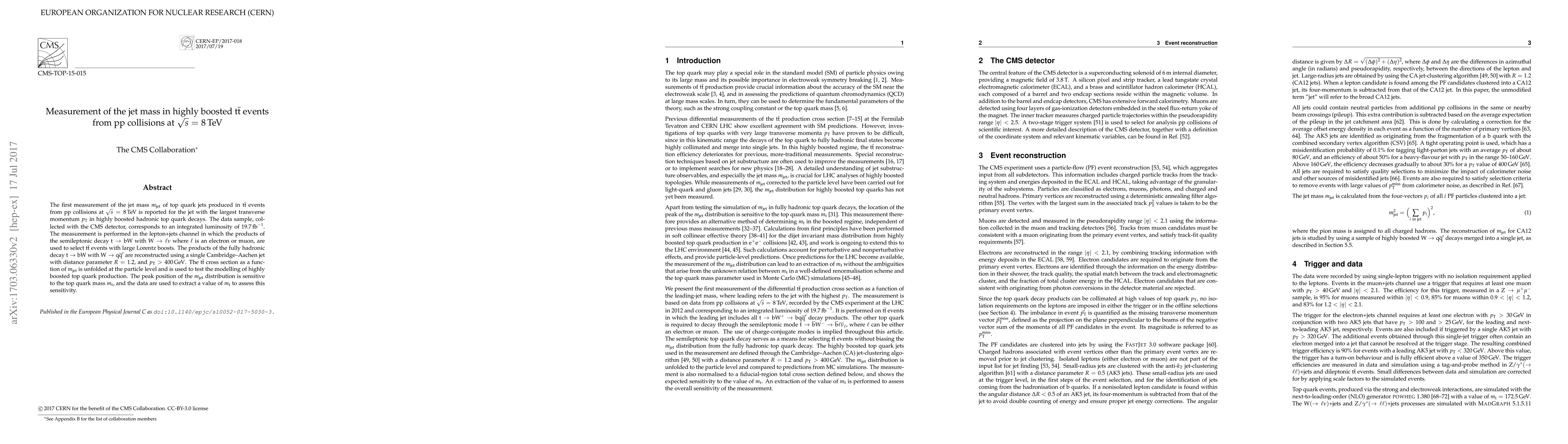 This study measures the mass of top quark jets in high-energy collisions, using data from CMS detector to test top quark production models and estimate the top quark mass.