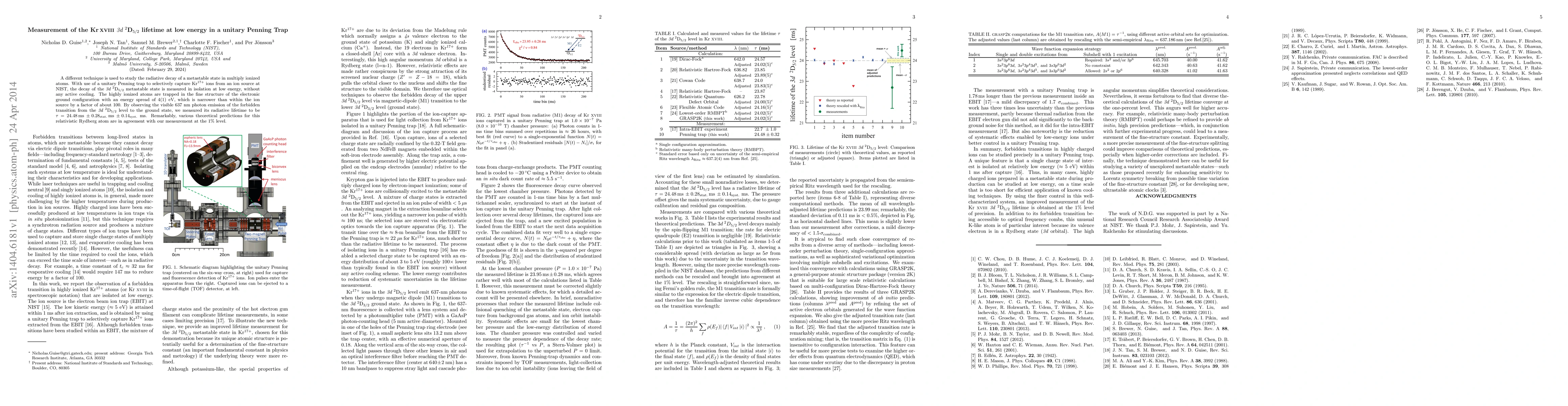 A different technique is used to study the radiative decay of a metastable state in multiply ionized atoms. With use of a unitary Penning trap to selectively capture Kr$^{17+}$ ions from an ion source at NIST, the decay of the 3d $^2D_{5/2}$ metastable state is measured in isolation at low energy, without any active cooling. The highly ionized atoms are trapped in the fine structure of the electronic ground configuration with an energy spread of 4(1) eV, which is narrower than within the ion source by a factor of about 100. By observing the visible 637 nm photon emission of the forbidden transition from the 3d $^2D_{5/2}$ level to the ground state, we measured its radiative lifetime to be $\tau=$ 24.48 ms +/- 0.28(stat.) ms +/- 0.14(syst.) ms. Remarkably, various theoretical predictions for this relativistic Rydberg atom are in agreement with our measurement at the 1% level.
