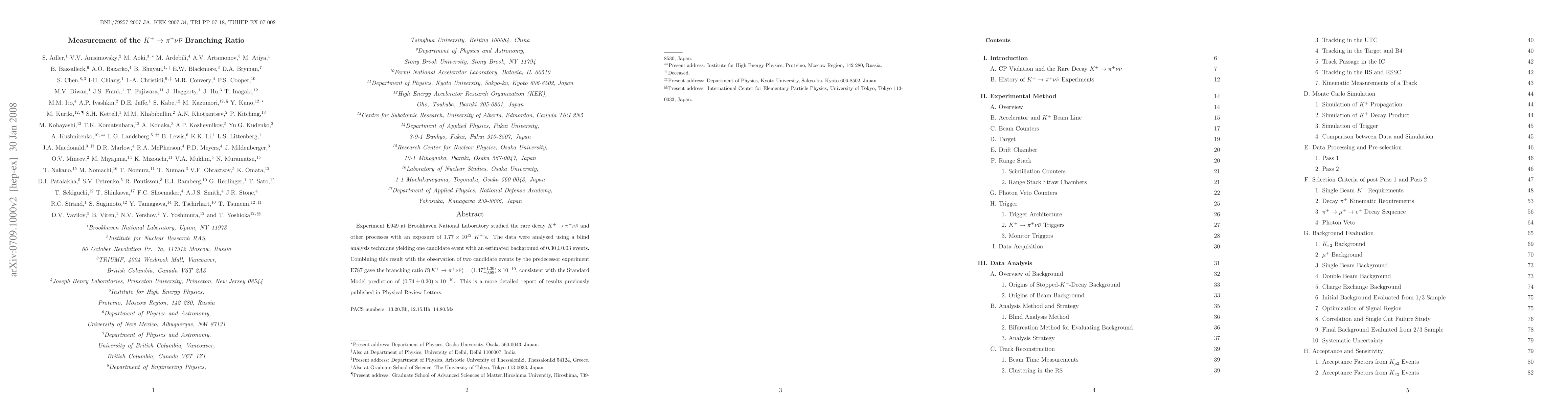 Experiment E949 at Brookhaven National Laboratory measured the branching ratio for the rare decay $K^+\to\pi^+\nu\bar{\nu}$ to be $(1.47^{+1.30}_{-0.89})\times 10^{-10}$, consistent with Standard Model predictions. The result combines data from E949 and predecessor experiment E787.