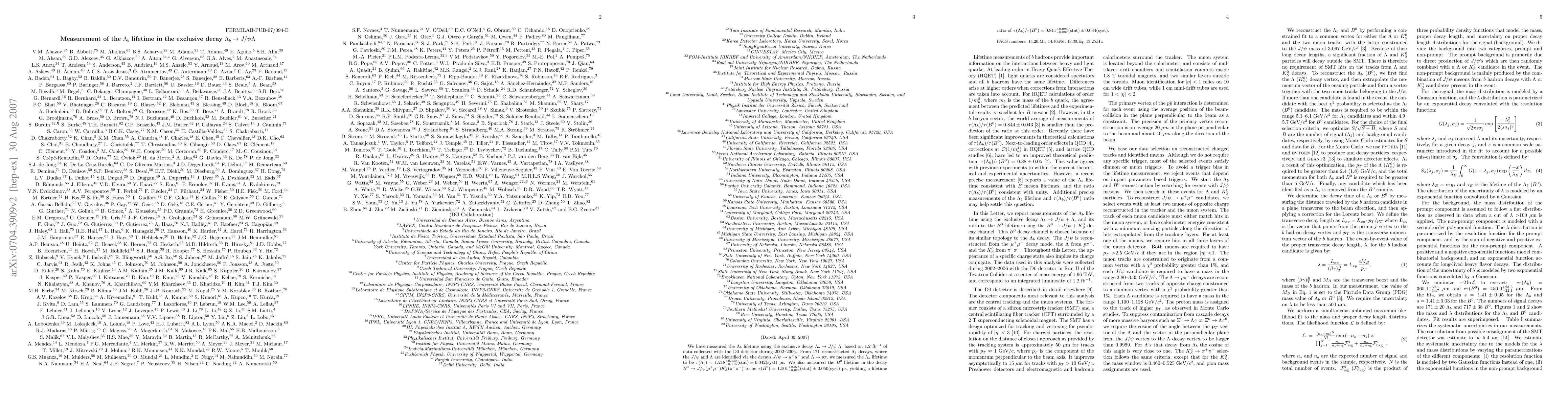 Researchers measured the lifetime of Lambda_b particles in exclusive decay to J/psi Lambda, obtaining a tau value of 1.218 ps with high precision, confirming a shorter lifetime compared to B mesons.