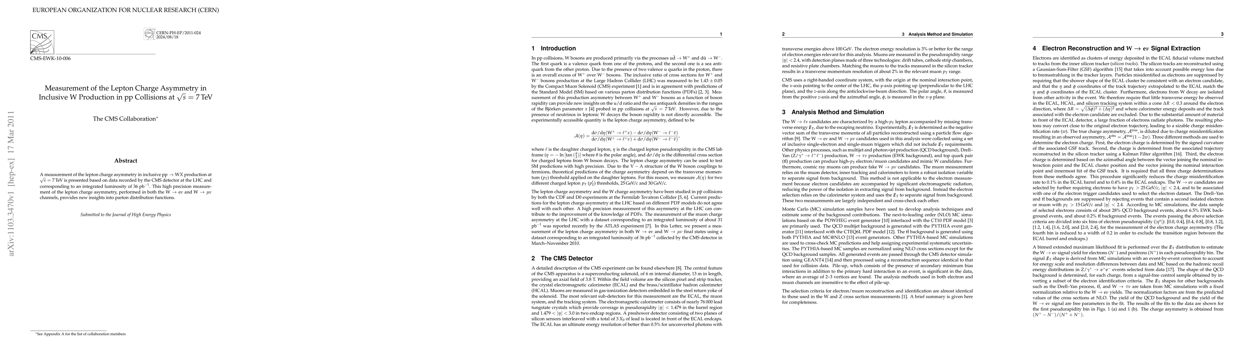This paper reports a high precision measurement of lepton charge asymmetry in W boson production from proton-proton collisions at 7 TeV, using data from the CMS detector at the LHC, offering new insights into parton distribution functions.