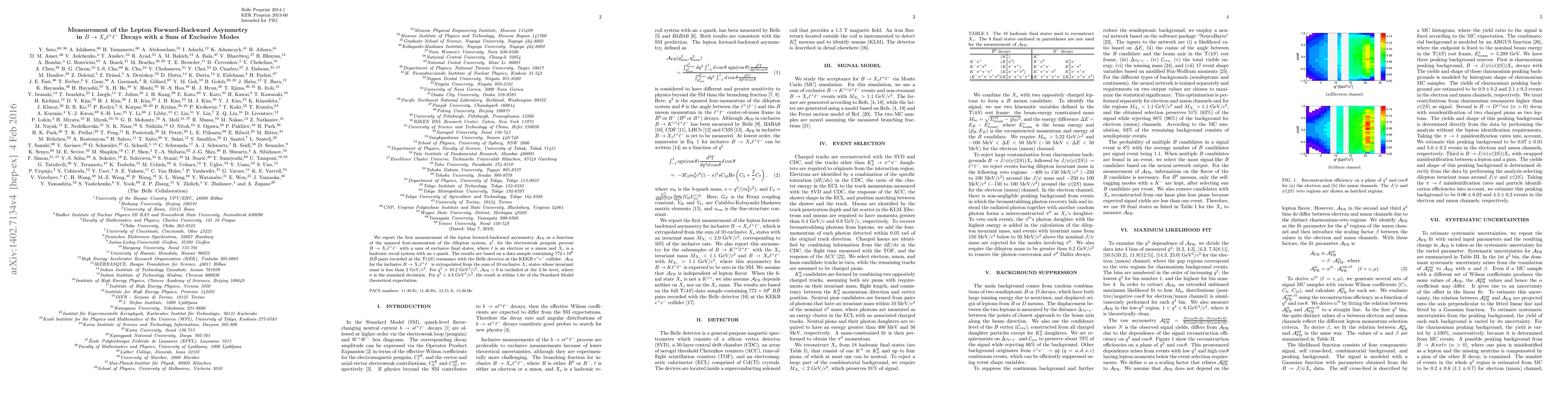 This study measures the lepton forward-backward asymmetry in $B \rightarrow X_s \ell^+ \ell^-$ decays using a sum of exclusive modes, finding ${\cal A}_{\rm FB} < 0$ for $q^2 > 10.2$ GeV$^2$/$c^2$ at 2.3$\sigma$ exclusion, while results for $q^2 < 4.3$ GeV$^2$/$c^2$ align within 1.8$\sigma$ with Standard Model predictions.