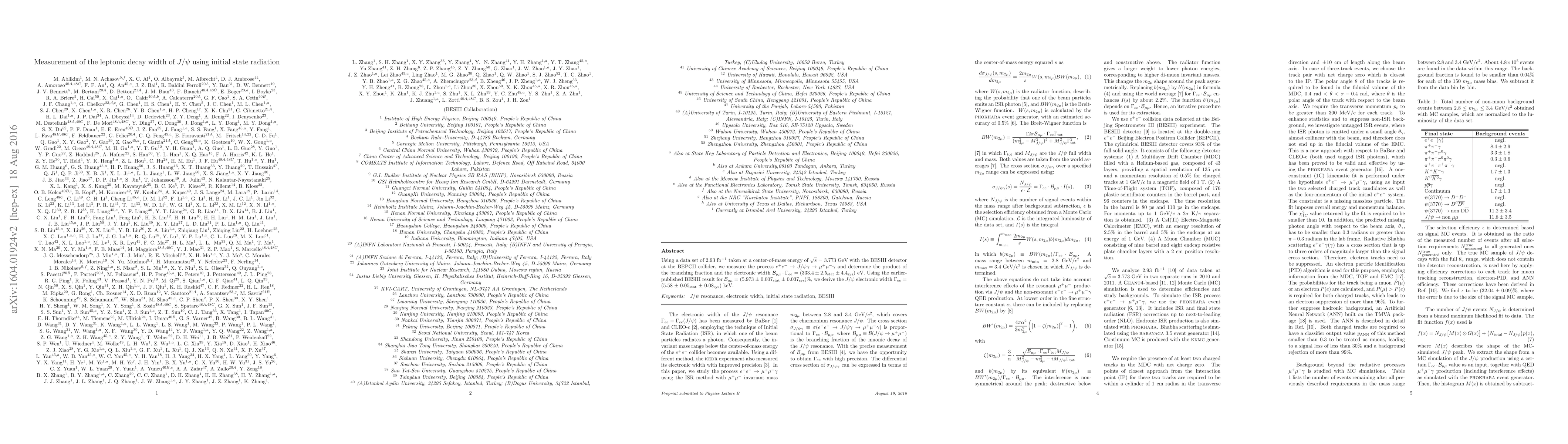 The paper presents an advanced application of the ISR method for measuring the J/ψ electronic width with high precision, utilizing sophisticated Monte Carlo simulations and radiator function calculations.