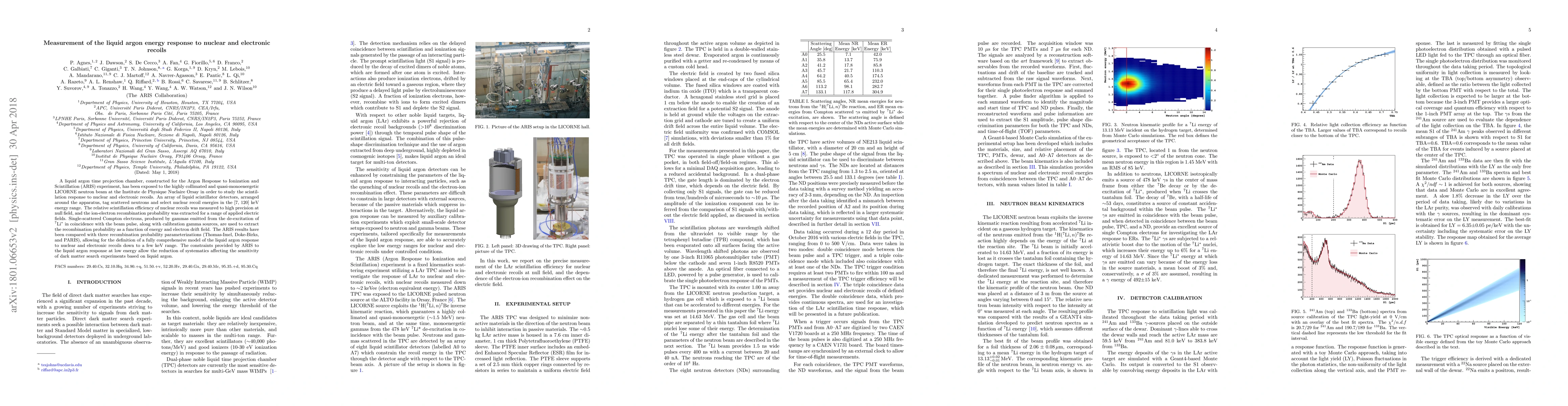 The ARIS experiment used a liquid argon time projection chamber to measure the scintillation response to nuclear and electronic recoils with high precision. The results provide a comprehensive model of the liquid argon response, reducing systematics and improving the sensitivity of dark matter search experiments.