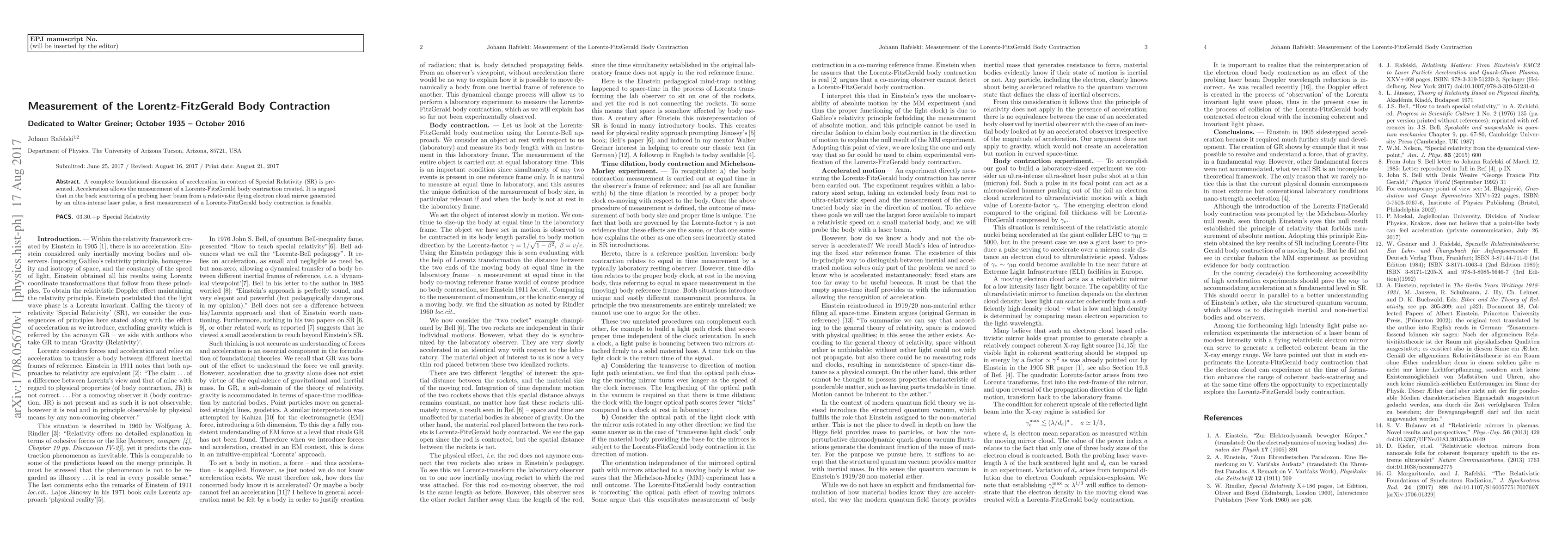 A complete foundational discussion of acceleration in context of Special Relativity is presented. Acceleration allows the measurement of a Lorentz-FitzGerald body contraction created. It is argued that in the back scattering of a probing laser beam from a relativistic flying electron cloud mirror generated by an ultra-intense laser pulse, a first measurement of a Lorentz-FitzGerald body contraction is feasible.