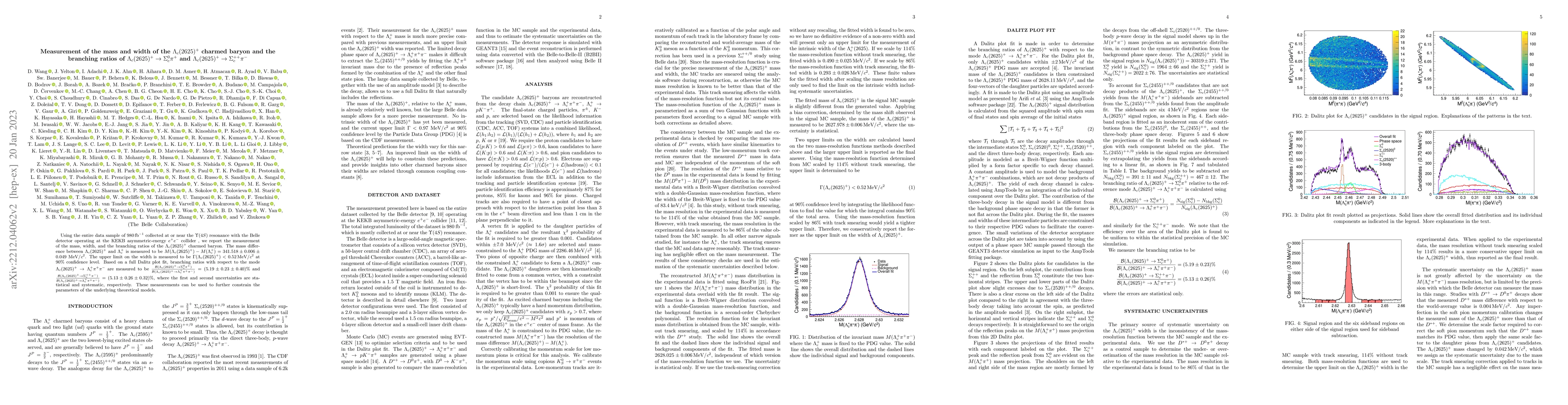This study measures the mass, width, and branching ratios of the $\Lambda_c(2625)^+$ charmed baryon using a $980\,\textrm{fb}^{-1}$ data sample from the Belle detector. The mass difference and upper limit on the width are precisely determined, and branching ratios for decay modes $\Lambda_c(2625)^+ \to \Sigma_c^{0}\pi^{+}$ and $\Lambda_c(2625)^+ \to \Sigma_c^{++}\pi^{-}$ are reported.