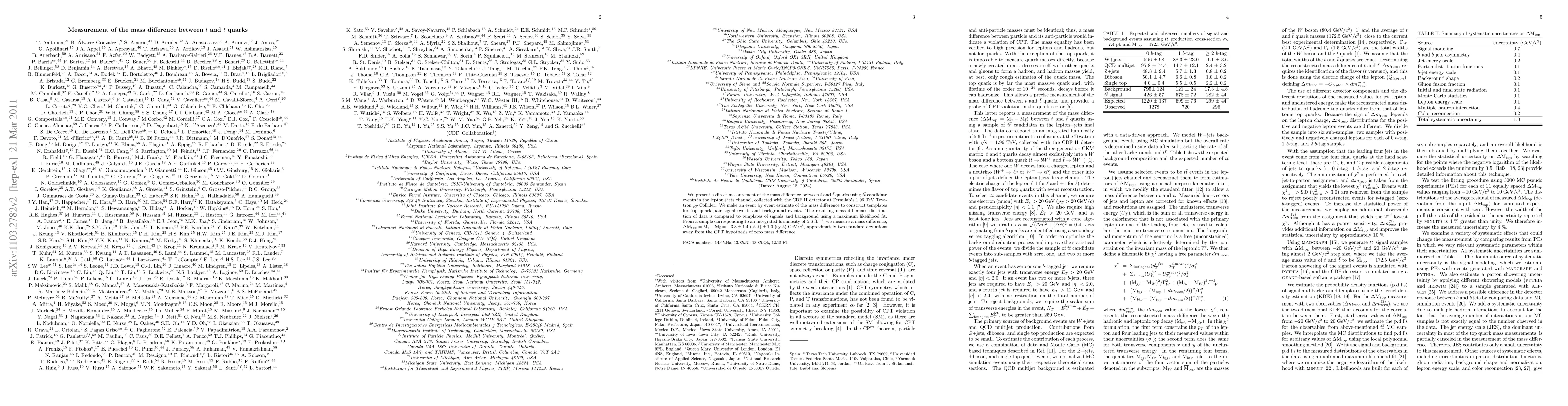 This study directly measures the mass difference between top and anti-top quarks using CDF II detector data from the Tevatron collider, finding a mass difference of $-3.3 \pm 1.4(stat) \pm 1.0(syst)$ with a significance of approximately two standard deviations from zero. This is the most precise measurement to date.