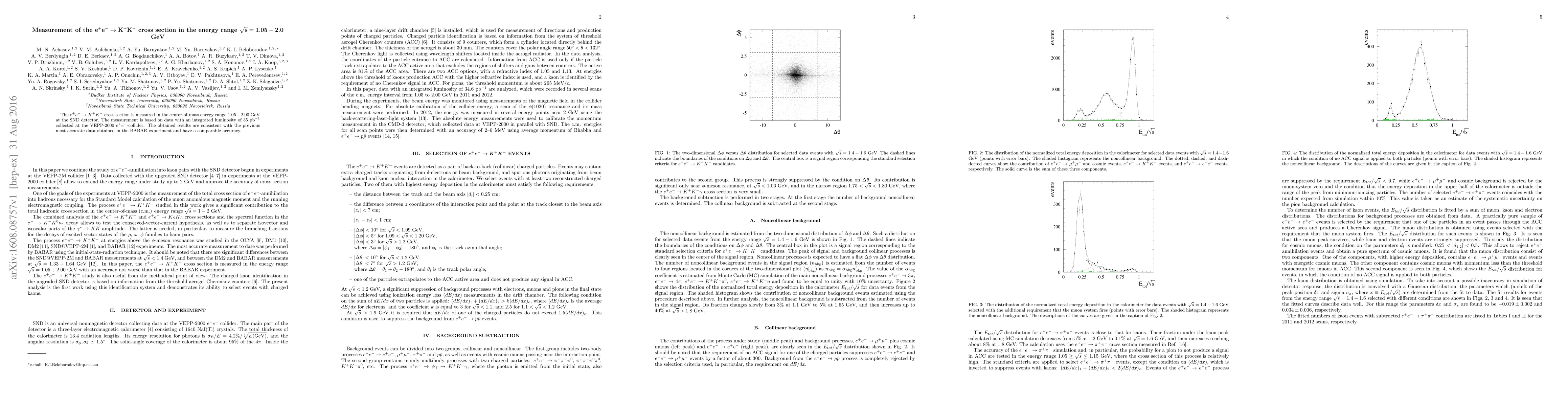The SND detector measured the $e^+e^-\to K^+K^-$ cross section in the energy range $1.05-2.00$ GeV, achieving results comparable to those from the BABAR experiment with similar accuracy. The data used had an integrated luminosity of 35 pb$^{-1}$ from the VEPP-2000 collider.