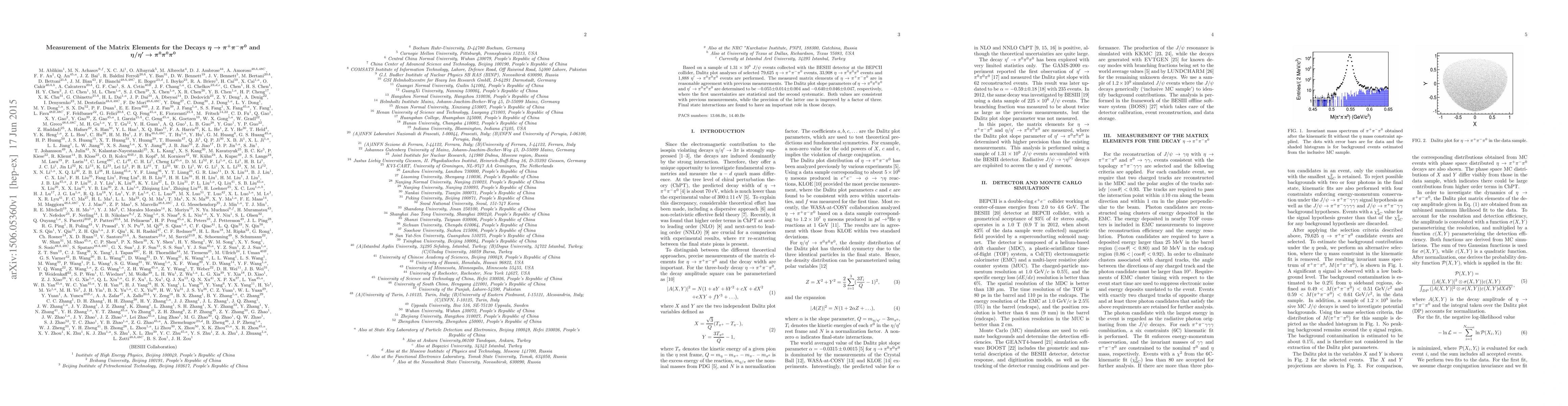 This research measures matrix elements for the decays $\eta \rightarrow \pi^{+}\pi^{-}\pi^0$ and $\eta/\eta^{\prime}\rightarrow\pi^0\pi^0\pi^0$ using the BESIII detector, finding the Dalitz plot slope parameters and confirming the importance of final state interactions in these processes.