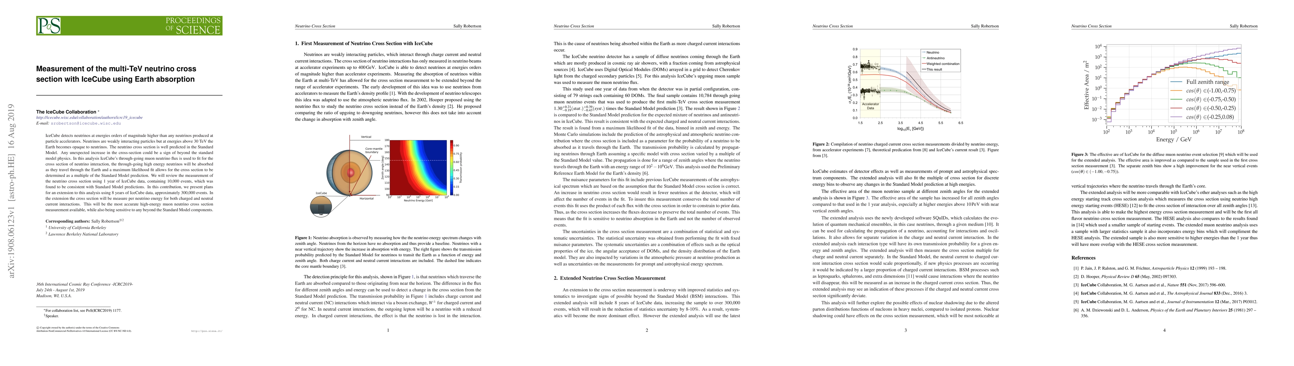 IceCube detects neutrinos at energies orders of magnitude higher than any neutrinos produced at particle accelerators. Neutrinos are weakly interacting particles but at energies above 30 TeV the Earth becomes opaque to neutrinos. The neutrino cross section is well predicted in the Standard Model. Any unexpected increase in the cross-section could be a sign of beyond the standard model physics. In this analysis IceCube's through-going muon neutrino flux is used to fit for the cross section of neutrino interaction, the through-going high energy neutrinos will be absorbed as they travel through the Earth and a maximum likelihood fit allows for the cross section to be determined as a multiple of the Standard Model prediction. We will review the measurement of the neutrino cross section using 1 year of IceCube data, containing 10,000 events, which was found to be consistent with Standard Model predictions. In this contribution, we present plans for an extension to this analysis using 8 years of IceCube data, approximately 300,000 events. In the extension the cross section will be measure per neutrino energy for both charged and neutral current interactions. This will be the most accurate high-energy muon neutrino cross section measurement available, while also being sensitive to any beyond the Standard Model components.