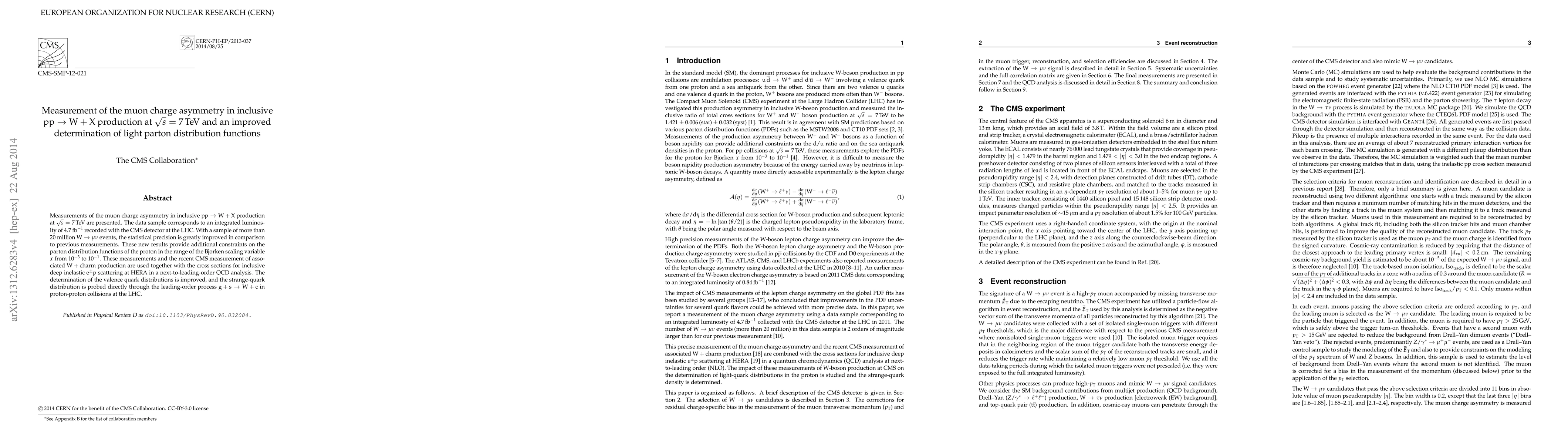 Measurements of the muon charge asymmetry in inclusive pp to WX production at sqrt(s) = 7 TeV are presented. The data sample corresponds to an integrated luminosity of 4.7 inverse femtobarns recorded with the CMS detector at the LHC. With a sample of more than twenty million W to mu nu events, the statistical precision is greatly improved in comparison to previous measurements. These new results provide additional constraints on the parton distribution functions of the proton in the range of the Bjorken scaling variable x from 10E-3 to 10E-1. These measurements and the recent CMS measurement of associated W + charm production are used together with the cross sections for inclusive deep inelastic ep scattering at HERA in a next-to-leading-order QCD analysis. The determination of the valence quark distributions is improved, and the strange-quark distribution is probed directly through the leading-order process g + s to W + c in proton-proton collisions at the LHC.