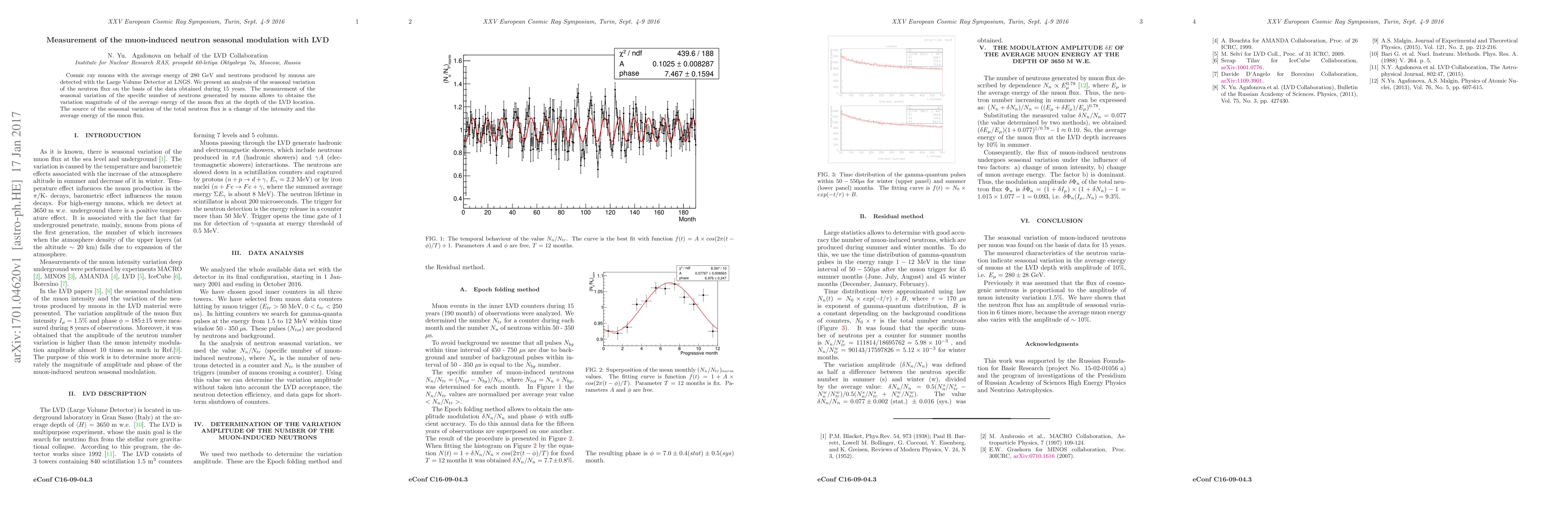 This paper measures the seasonal modulation of muon-induced neutron flux using data from the Large Volume Detector over 15 years, revealing a variation in the neutron flux linked to changes in the muon flux intensity and energy. The findings provide insights into the seasonal behavior of cosmic ray muons.