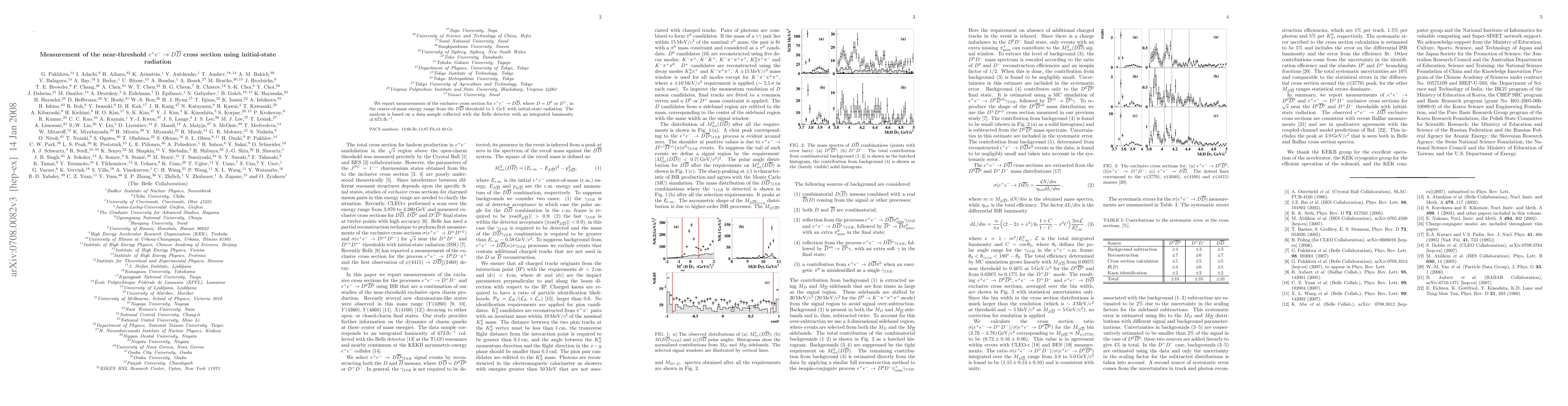 This paper reports precise measurements of the exclusive cross section for producing $D^0$ or $D^+$ meson pairs in electron-positron collisions near the $D \bar D$ production threshold, utilizing initial-state radiation and data from the Belle detector with an integrated luminosity of 673 $\mathrm{fb}^{-1}$. The findings provide insights into the dynamics of charm meson production.