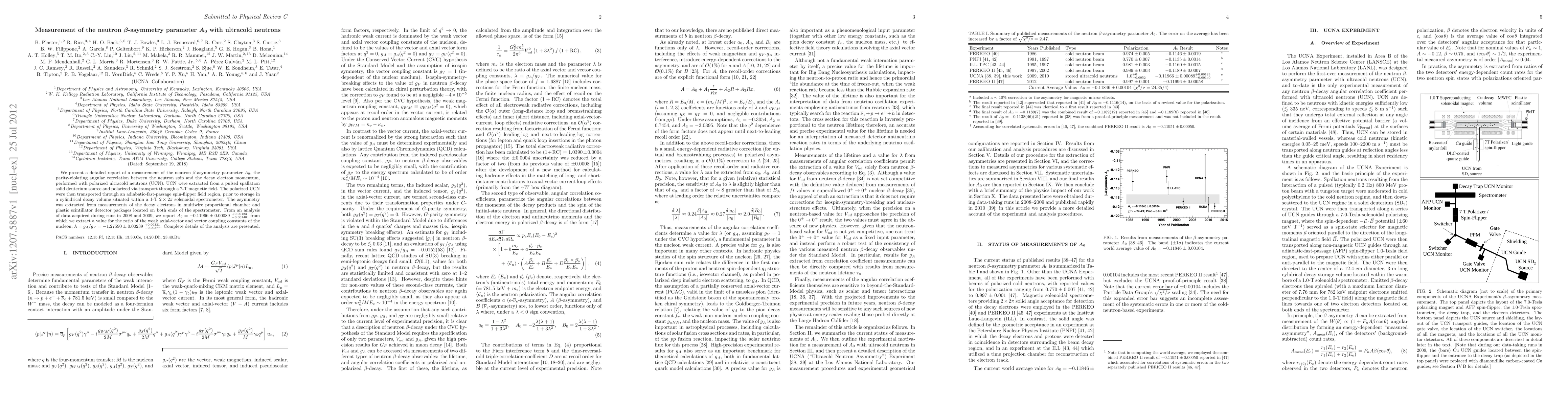 The research employed ultracold neutrons (UCN) to measure the neutron β-asymmetry parameter $A_0$, utilizing polarized UCN from a solid deuterium source, a 7-T magnetic field for polarization, a spin-flipper, and a 1-T solenoidal spectrometer for decay volume storage and electron detection with multiwire proportional chamber and plastic scintillator detectors.