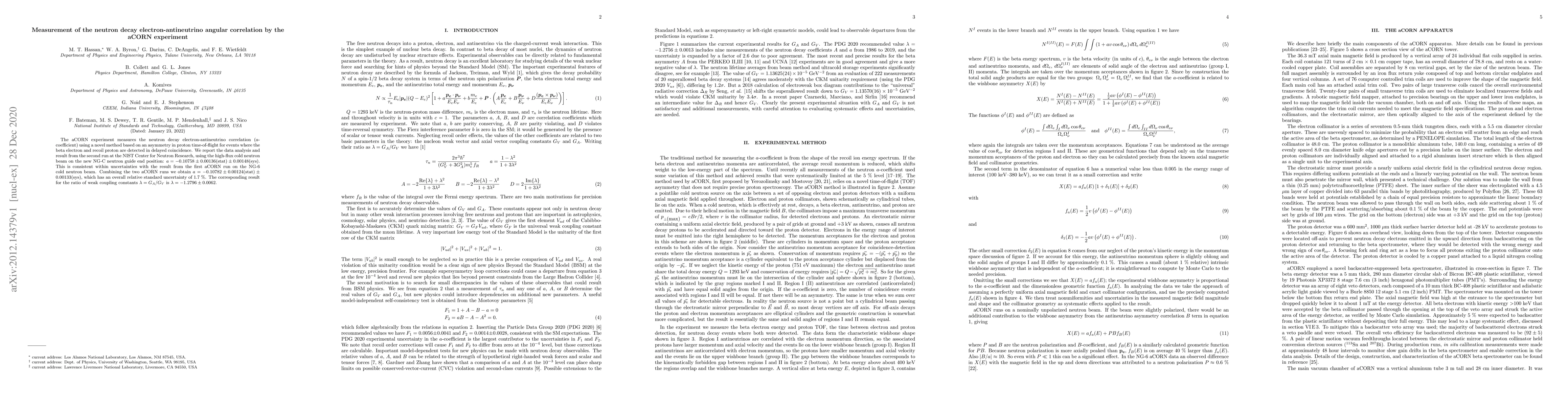 The aCORN experiment measures neutron decay electron-antineutrino correlation with a novel method, reporting $a = -0.10758$ with a 1.7% relative uncertainty.