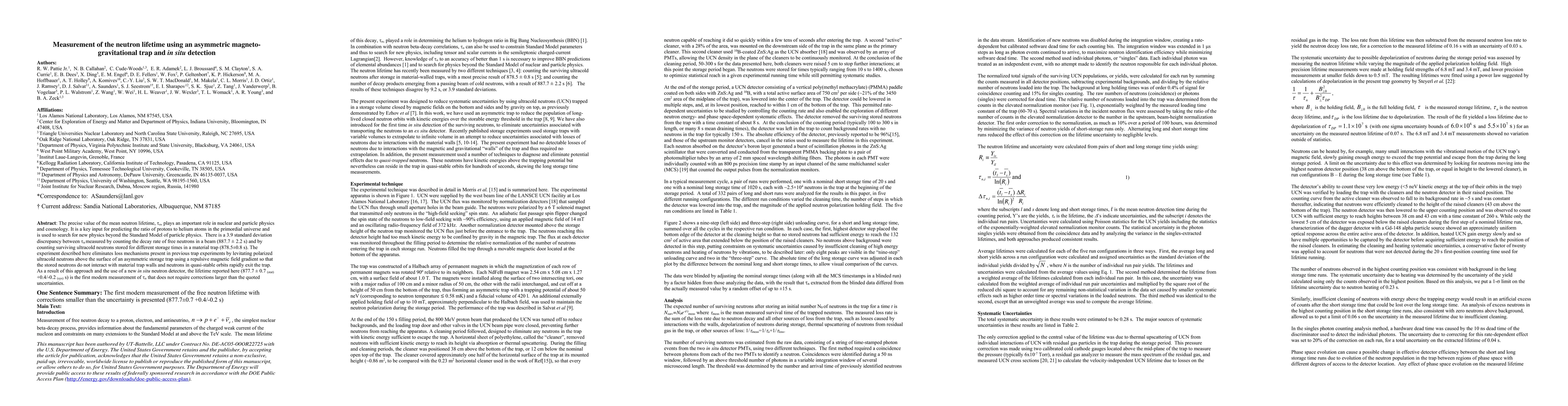 Development of an asymmetric magneto-gravitational trap and an in situ neutron detection method to accurately measure the neutron lifetime without significant corrections.