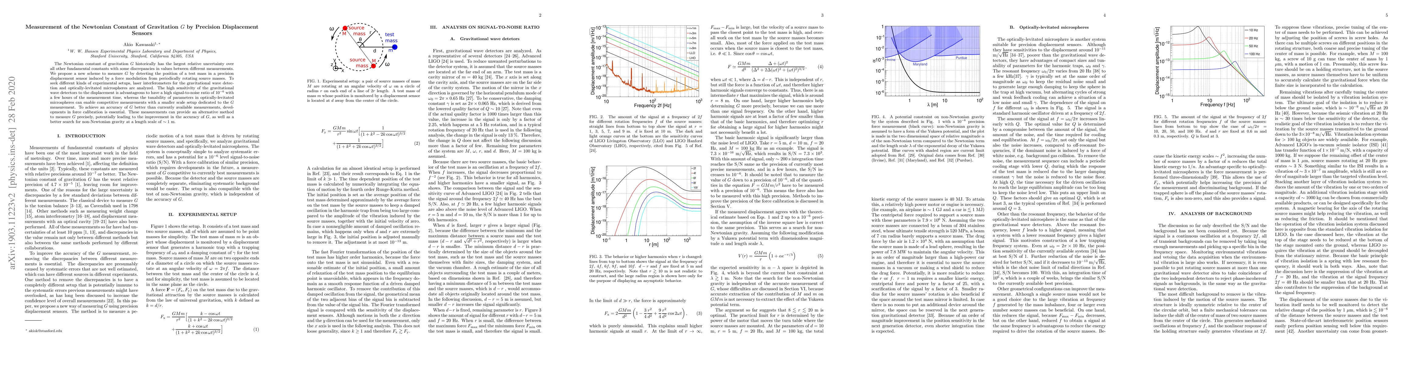 This paper proposes a novel method to measure the Newtonian constant of gravitation $G$ using precision displacement sensors, comparing laser interferometers and optically-levitated microspheres for high sensitivity and tunability. The aim is to achieve an accuracy surpassing current measurements, potentially improving the search for non-Newtonian gravity.
