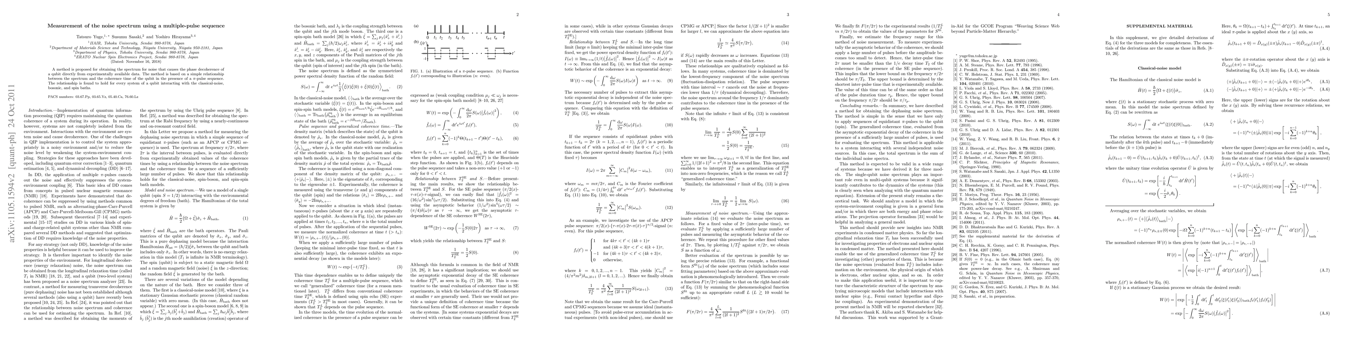 Researchers propose a method to measure noise spectrum of qubits using multiple-pulse sequences, finding it holds true for various types of noise.