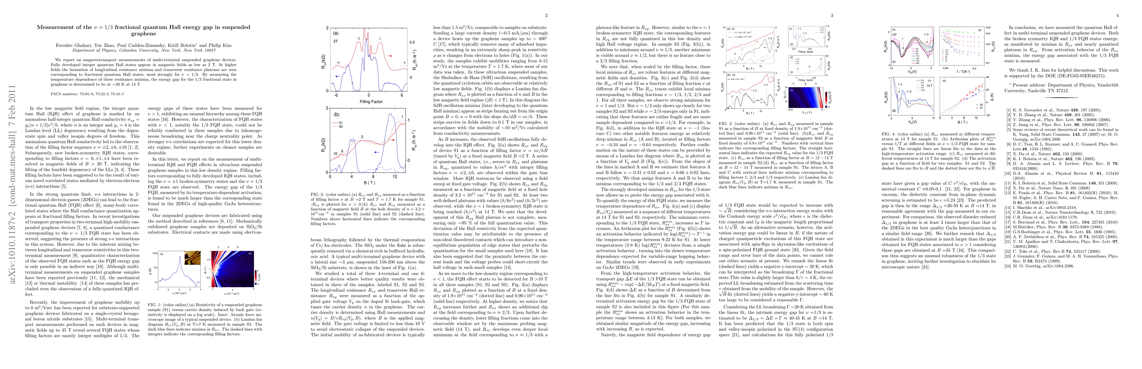 This study reports magnetotransport measurements in suspended graphene, revealing the development of integer and fractional quantum Hall states, with a focus on the 1/3 fractional state. The energy gap for the ν=1/3 state is determined to be approximately 20 K at 14 T.