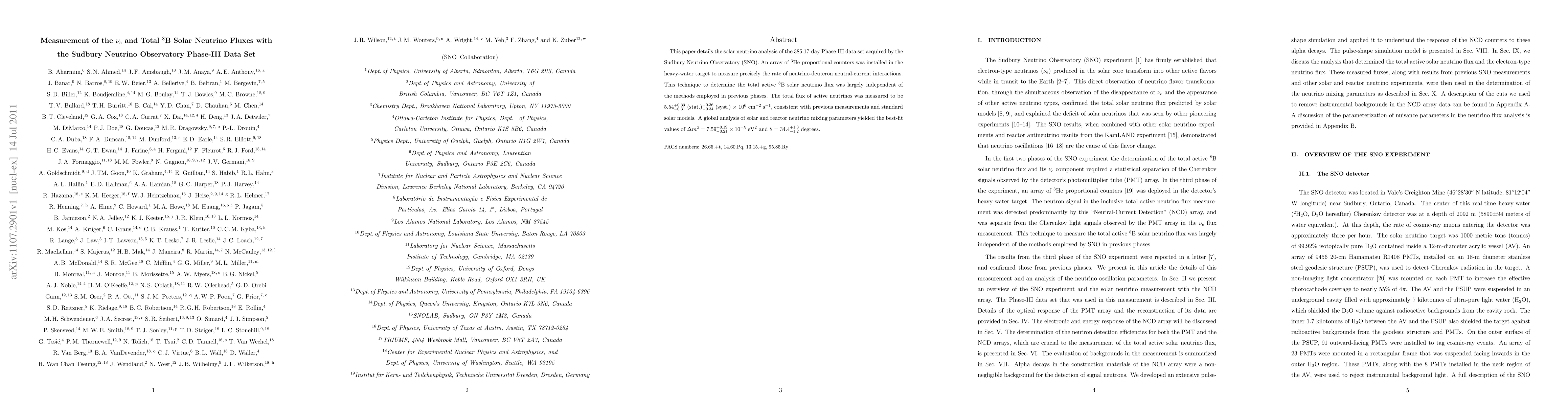 This paper reports on the measurement of $^8$B solar neutrino fluxes using the Phase-III data set from the Sudbury Neutrino Observatory, finding a total flux of $5.54^{+0.33}_{-0.31}(stat.)^{+0.36}_{-0.34}(syst.)\times 10^{6}$ cm$^{-2}$ s$^{-1}$. The study also determined best-fit values for neutrino mixing parameters: $\Delta m^2 = 7.59^{+0.19}_{-0.21}\times 10^{-5}{eV}^2$ and $\theta = 34.4^{+1.3}_{-1.2}$ degrees.