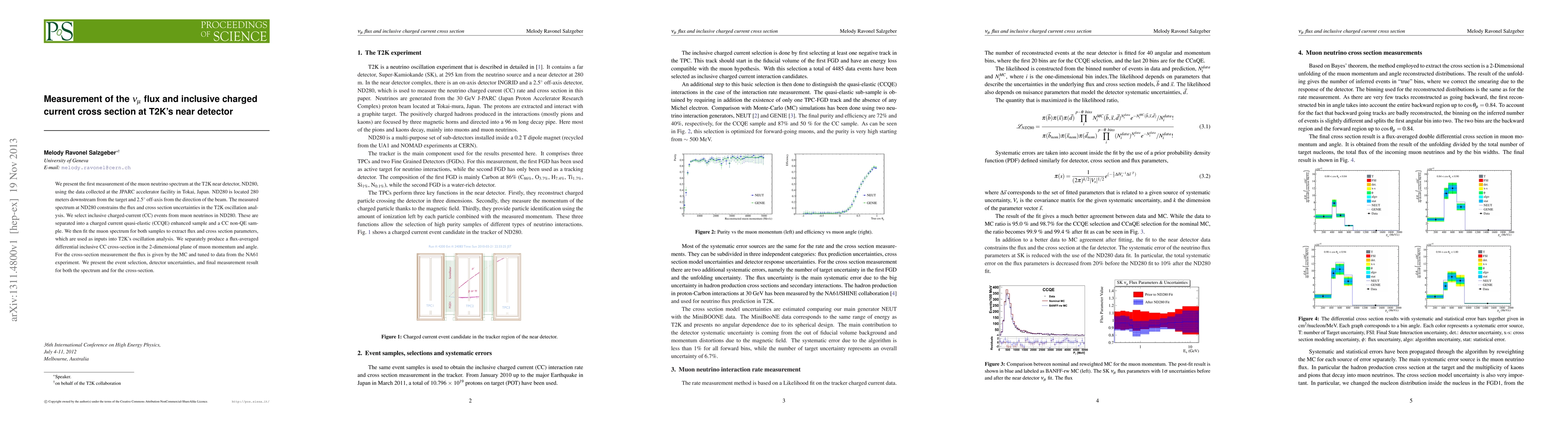 This paper reports the first measurement of the muon neutrino spectrum at T2K's near detector ND280, which helps constrain flux and cross-section uncertainties in T2K's oscillation analysis. The study fits the muon spectrum from inclusive charged-current events to extract flux and cross-section parameters, providing a flux-averaged differential inclusive cross-section.