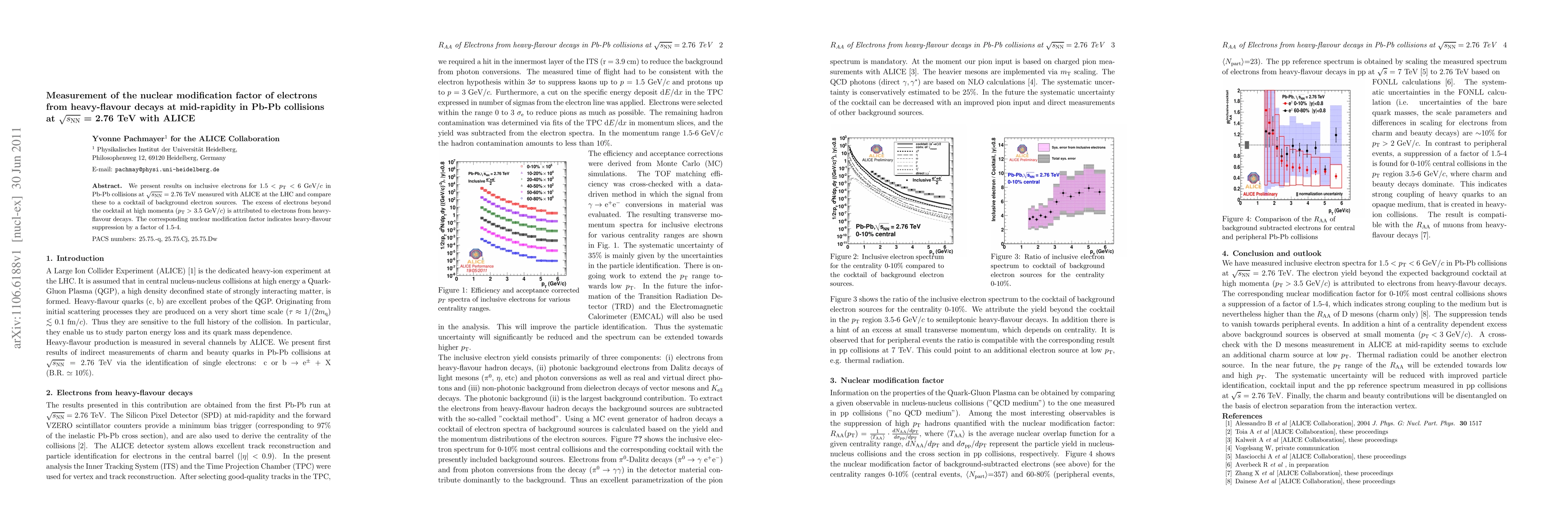 Summary: This study measures the nuclear modification factor of electrons from heavy-flavour decays in Pb-Pb collisions at 2.76 TeV, revealing a suppression factor of 1.5-4 for high-momentum electrons, indicating significant heavy-flavour suppression in the medium.
