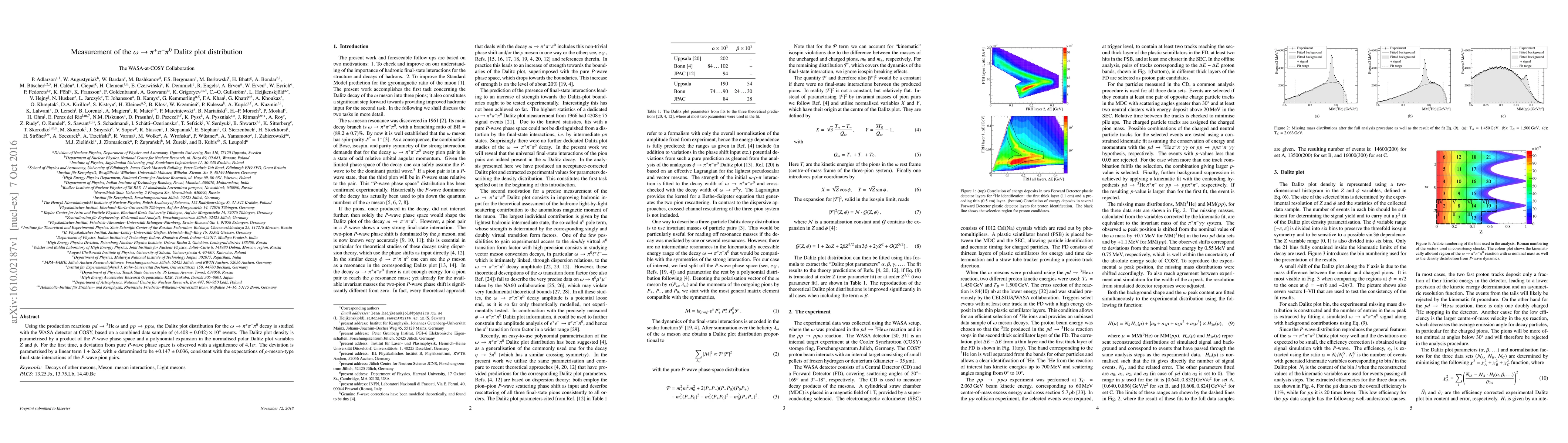 The paper presents a detailed analysis of the $\omega \to \pi^+ \pi^- \pi^0$ decay using advanced detector technology and sophisticated data analysis techniques, leading to the observation of deviations from P-wave phase space.