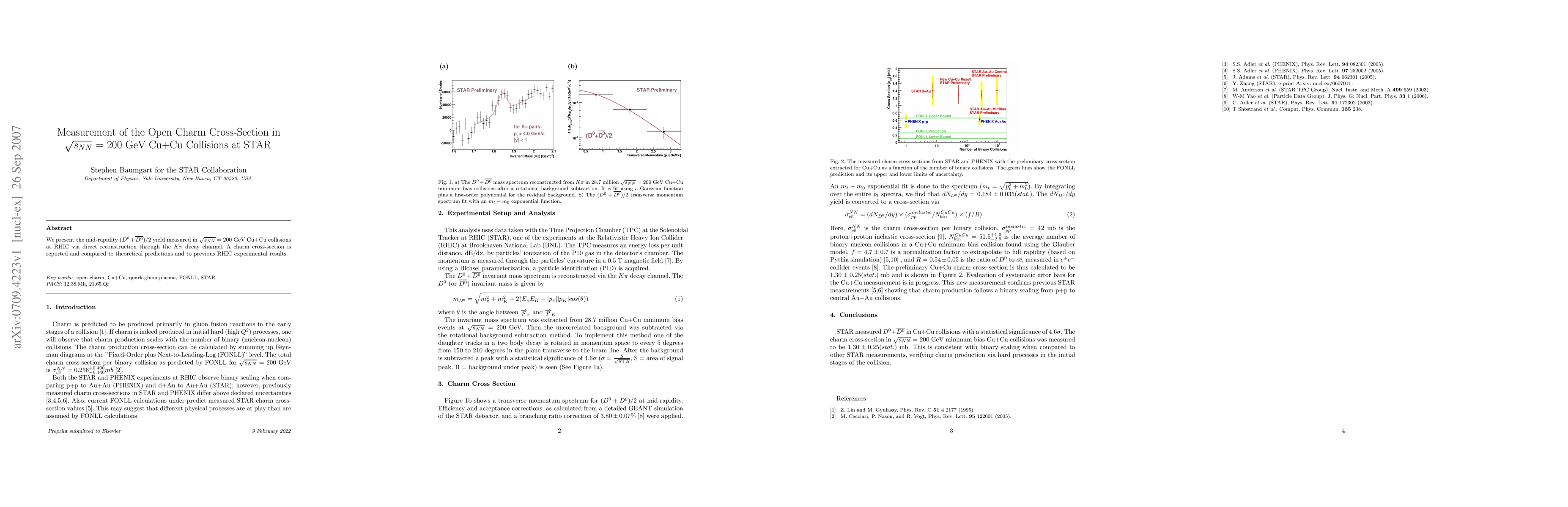 Researchers measured the yield of open charm particles in Cu+Cu collisions at RHIC and reported a charm cross-section for comparison with theoretical predictions and previous experimental results.