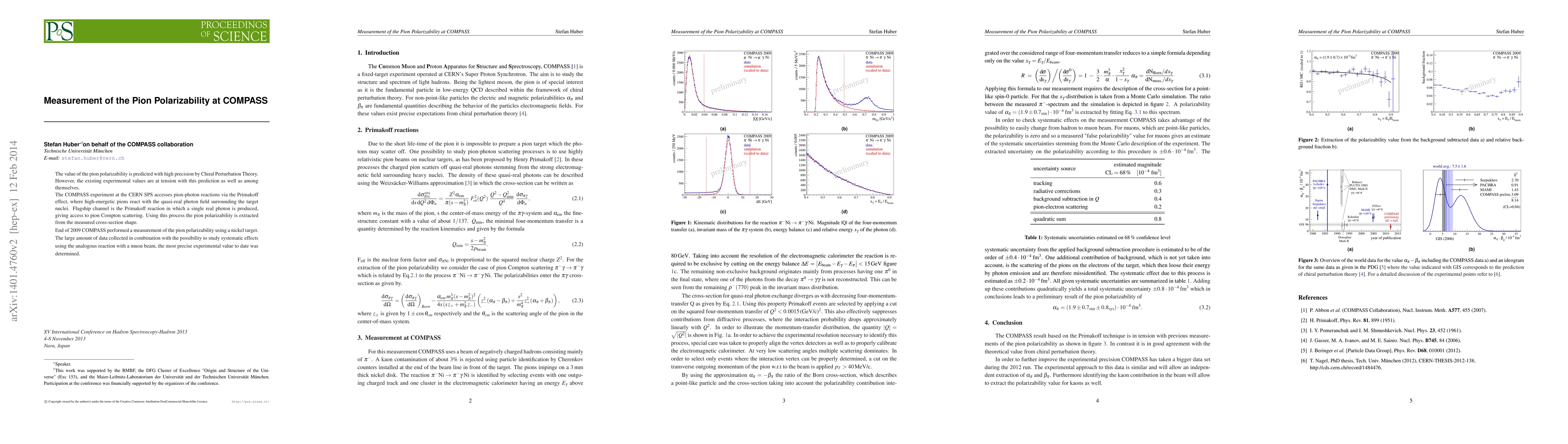 The value of the pion polarizability is predicted with high precision by Chiral Perturbation Theory. However, the existing experimental values are at tension with this prediction as well as among themselves. The COMPASS experiment at the CERN SPS accesses pion-photon reactions via the Primakoff effect, where high-energetic pions react with the quasi-real photon field surrounding the target nuclei. Flagship channel is the Primakoff reaction in which a single real photon is produced, giving access to pion Compton scattering. Using this process the pion polarizability is extracted from the measured cross-section shape. End of 2009 COMPASS performed a measurement of the pion polarizability using a nickel target. The large amount of data collected in combination with the possibility to study systematic effects using the analogous reaction with a muon beam, the most precise experimental value to date was determined.
