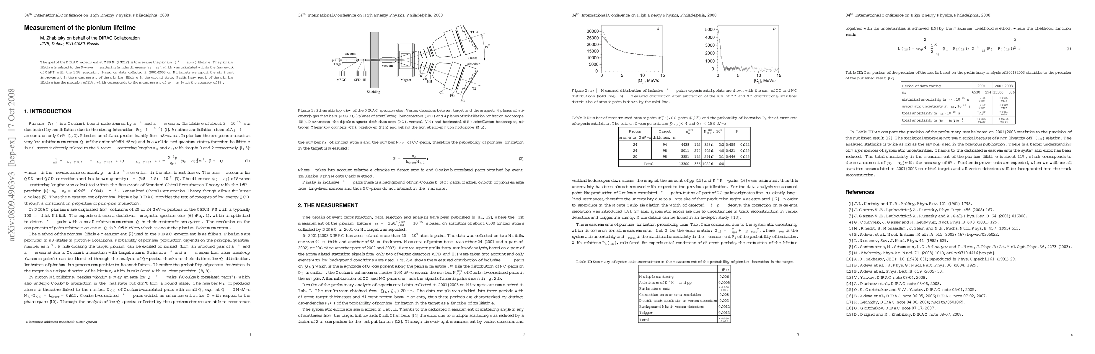 This work improves upon previous measurements by significantly reducing systematic errors and increasing the precision of pionium lifetime measurement, providing a more accurate test of chiral perturbation theory predictions.