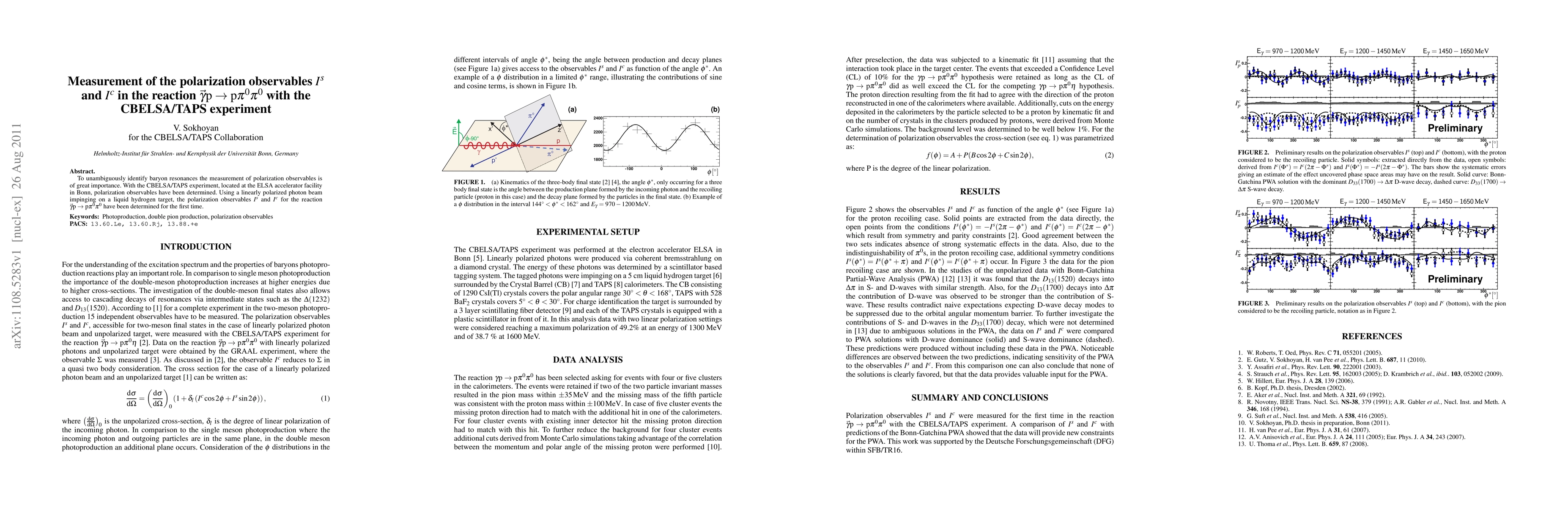 This paper reports the first measurement of the polarization observables I^s and I^c in the reaction γp → pπ^0π^0 using the CBELSA/TAPS experiment at the ELSA accelerator in Bonn, which aids in identifying baryon resonances. The study employs a linearly polarized photon beam and a liquid hydrogen target.