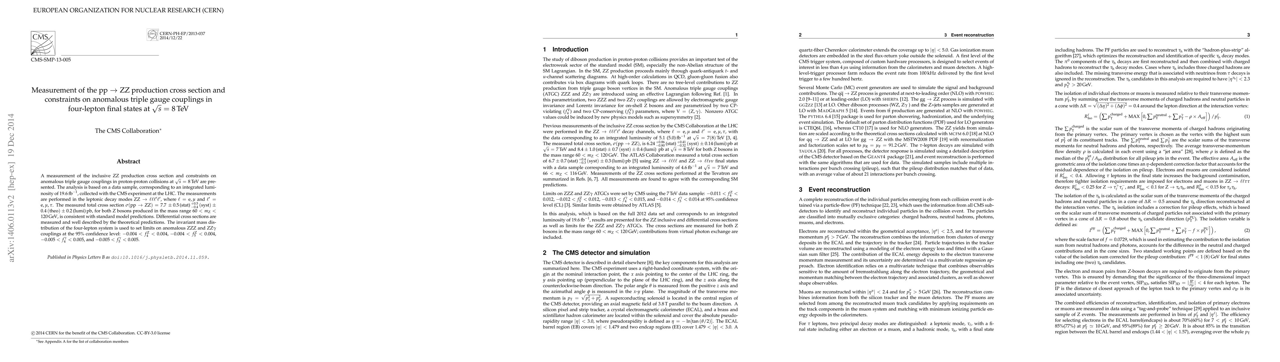 This paper measures the inclusive ZZ production cross section in proton-proton collisions at 8 TeV and sets constraints on anomalous triple gauge couplings using four-lepton final states. The results are consistent with standard model predictions, with no significant deviations observed.