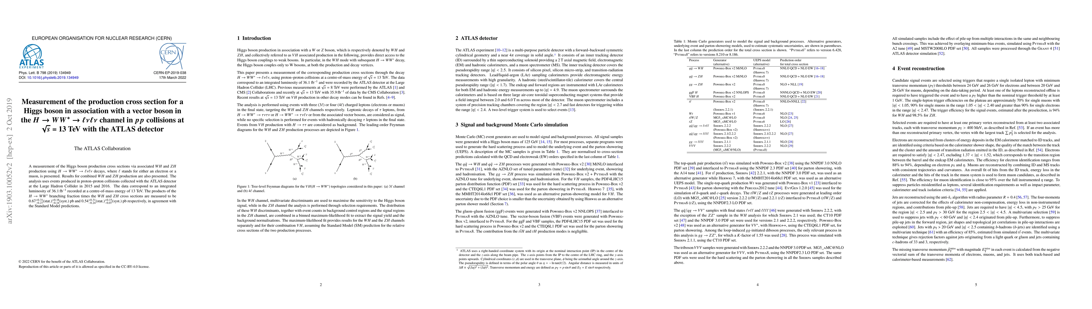 This study measures the production cross section for a Higgs boson in association with a vector boson in the ATLAS detector, focusing on the $H \rightarrow WW^{\ast} \rightarrow \ell\nu\ell\nu$ decay channel. Results show agreement between measured cross sections for $WH$ and $ZH$ production and Standard Model predictions.