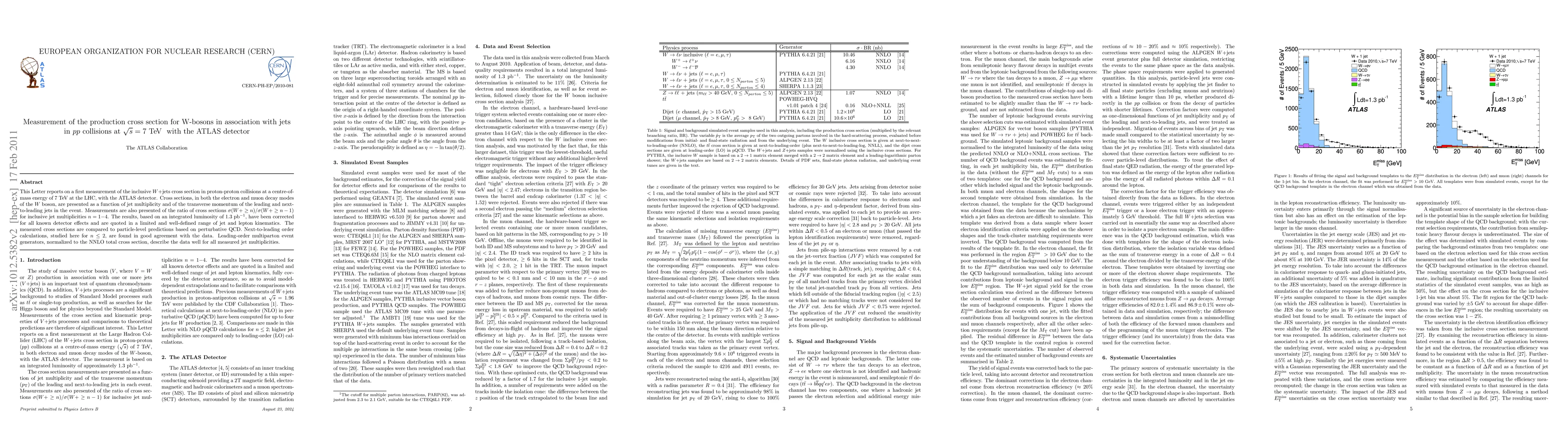 This Letter reports on a first measurement of the inclusive W+jets cross section in proton-proton collisions at a centre-of-mass energy of 7 TeV at the LHC, with the ATLAS detector. Cross sections, in both the electron and muon decay modes of the W boson, are presented as a function of jet multiplicity and of the transverse momentum of the leading and next-to-leading jets in the event. Measurements are also presented of the ratio of cross sections sigma(W+ \ge n) / sigma(W+ \ge n-1) for inclusive jet multiplicities n=1-4. The results, based on an integrated luminosity of 1.3 pb-1, have been corrected for all known detector effects and are quoted in a limited and well-defined range of jet and lepton kinematics. The measured cross sections are compared to particle-level predictions based on perturbative QCD. Next-to-leading order calculations, studied here for n \le 2, are found in good agreement with the data. Leading-order multiparton event generators, normalized to the NNLO total cross section, describe the data well for all measured jet multiplicities.