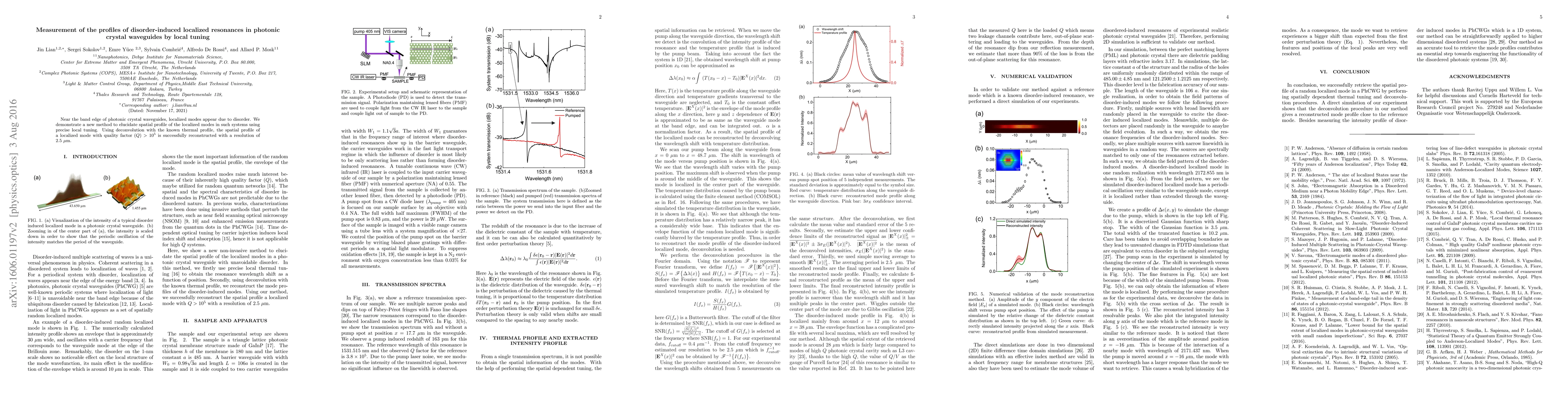 This paper presents a novel method for measuring the spatial profiles of disorder-induced localized resonances in photonic crystal waveguides through precise local tuning. The technique successfully reconstructs the profile of a high-quality ($Q > 10^5$) localized mode with a resolution of $2.5 \ \mu$m.