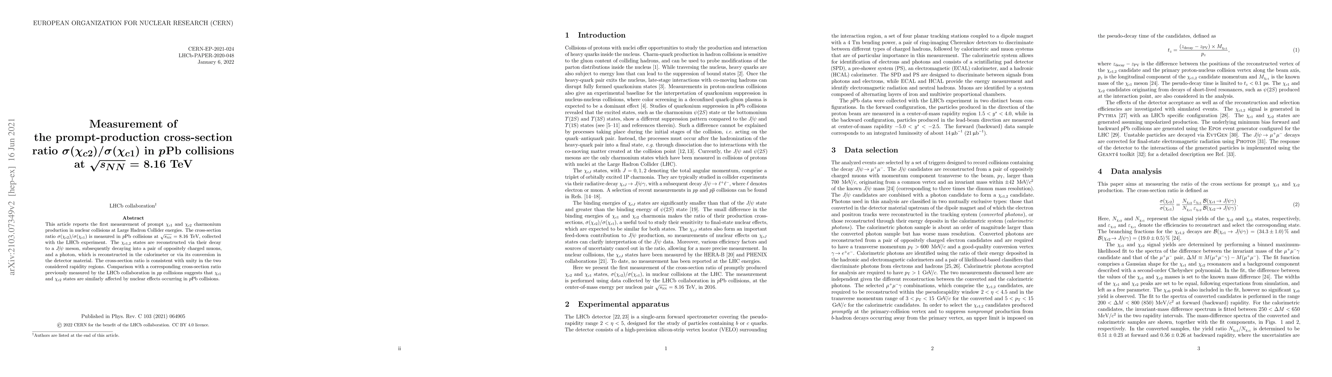 Researchers measured charmonium production in pPb collisions at 8.16 TeV, finding that the cross-section ratio of $ ho( ext{c2})/ ho( ext{c1})$ is consistent with unity across two rapidity regions, suggesting minimal nuclear effects on c1 and c2 states.