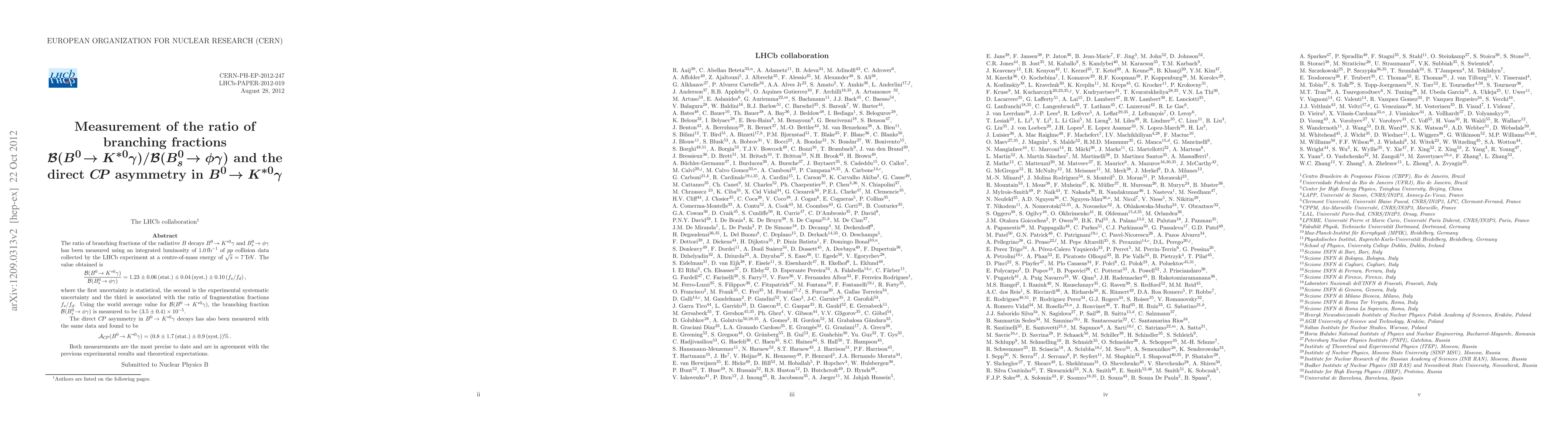 The LHCb experiment measured the ratio of branching fractions BR(B0 -> K*0 gamma)/BR(Bs0 -> phi gamma) to be 1.23 ± 0.10, and the direct CP asymmetry in B0 -> K*0 gamma decays to be 0.8 ± 1.7%. Both results are the most precise to date and align with previous findings and theoretical predictions.