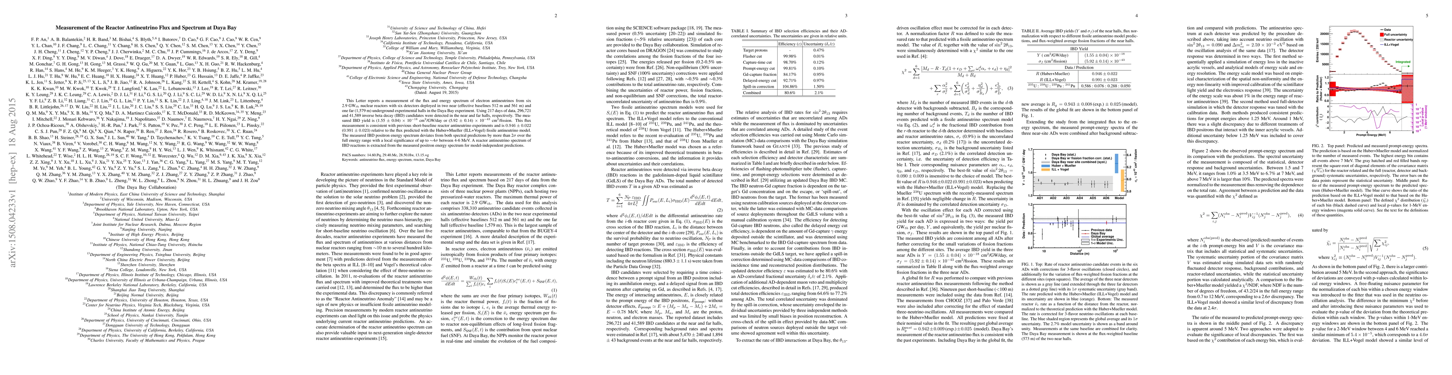 The Daya Bay experiment measures the flux and energy spectrum of electron antineutrinos from six nuclear reactors, finding a consistent flux with previous experiments but a spectrum deviating from predictions by more than 2$\sigma$ over the full energy range, with a 4$\sigma$ significance in the 4-6 MeV region.