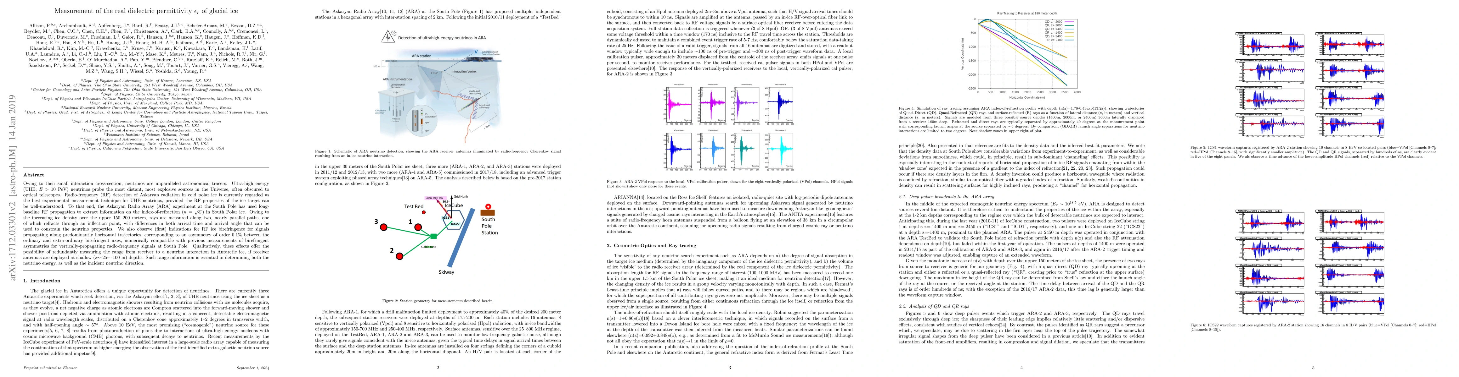 This study uses radio-frequency signal propagation data from the Askaryan Radio Array at the South Pole to measure the real dielectric permittivity of glacial ice, revealing birefringence and density-dependent refraction effects. These findings enable potential redundant measurements of neutrino interaction ranges in Antarctic ice, crucial for determining neutrino energy and direction.