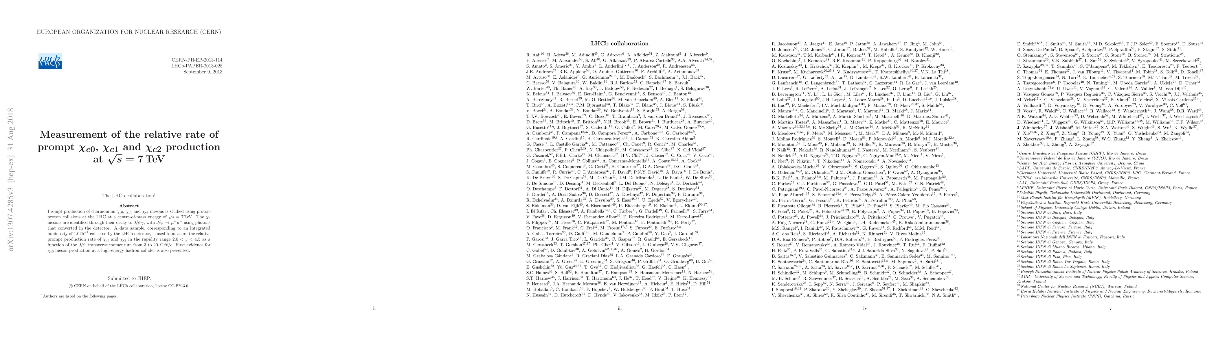 energy of $\sqrt{s}=7$TeV. The $\chi_{c}$ mesons are identified through their