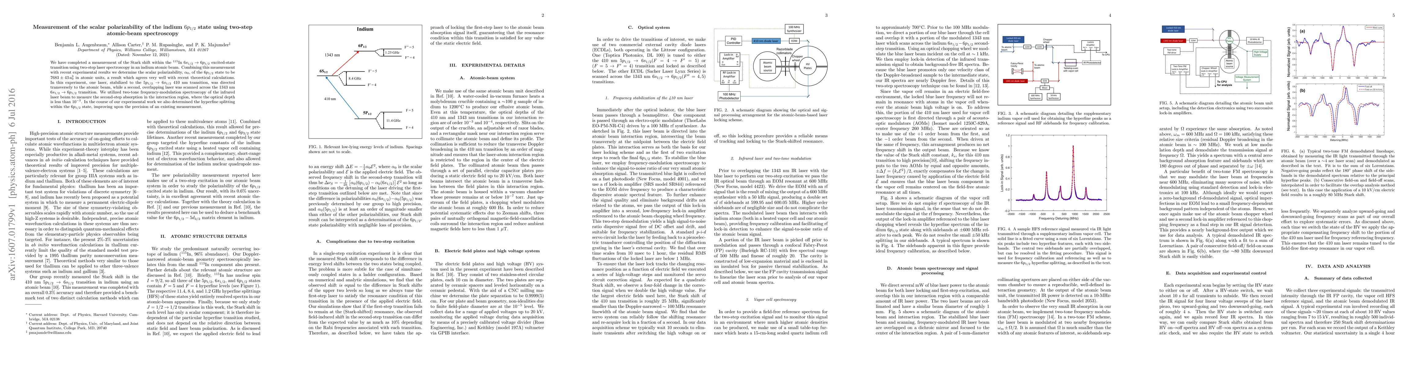 This study measures the scalar polarizability of the indium $6p_{1/2}$ state using two-step laser spectroscopy in an atomic beam, determining $\alpha_{0}$ to be $7683 \pm43 \,a_{0}^{3}$, which aligns closely with theoretical predictions. The experiment also refined the hyperfine splitting within the $6p_{1/2}$ state.