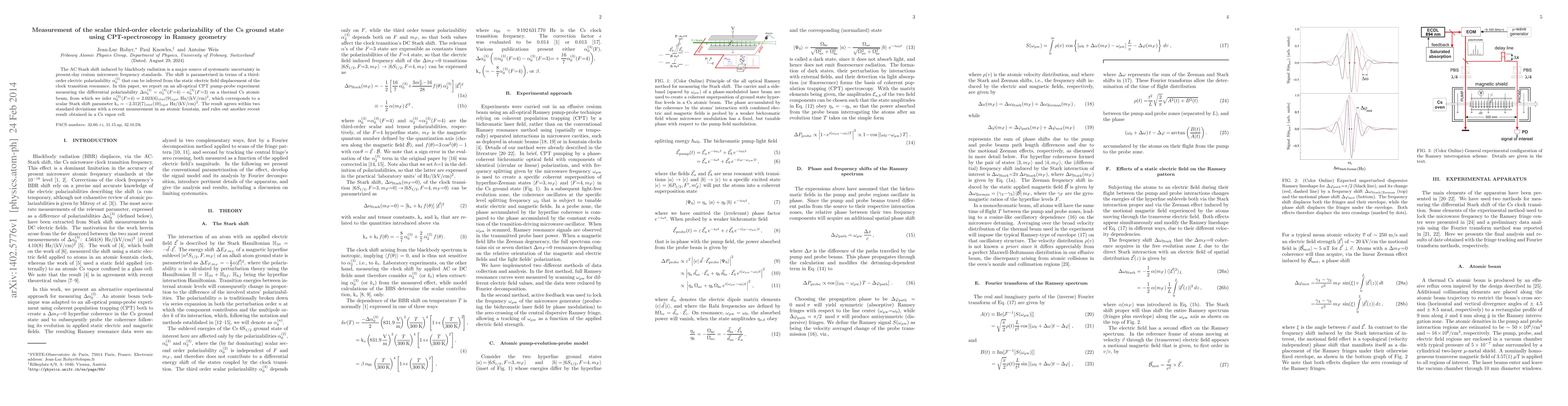 This research presents an all-optical CPT pump-probe experiment measuring the differential polarizability of Cs ground state, inferring $alpha_0^{(3)}(F{=}4) = 2.023(6)_{stat}(9)_{syst}~Hz/(kV/cm)^2$. The result agrees with a recent atomic fountain measurement and contradicts another from a Cs vapor cell, providing crucial data for improving cesium microwave frequency standards.