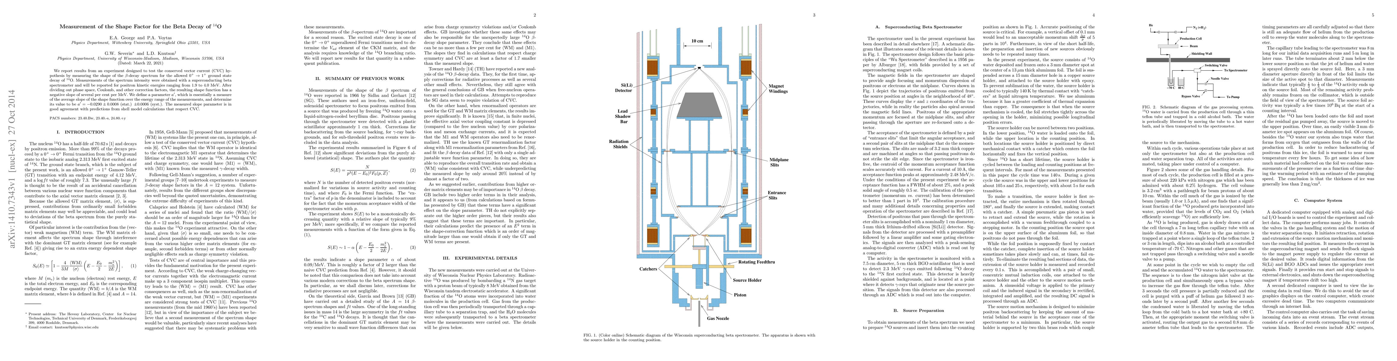 We report results from an experiment designed to test the conserved vector current (CVC) hypothesis by measuring the shape of the $\beta$-decay spectrum for the allowed $0^+\rightarrow 1^+$ ground state decay of $^{14}$O. Measurements of the spectrum intensity were obtained with a superconducting beta spectrometer and will be reported for positron kinetic energies ranging from 1.9 to 4.0 MeV. After dividing out phase space, Coulomb, and other correction factors, the resulting shape function has a negative slope of several per cent per MeV. We define a parameter $a'$, which is essentially a measure of the average slope of the shape function over the energy range of the measurements, and determine its value to be $a' = -0.0290 \pm 0.0008$ (stat.) $\pm 0.0006$ (syst.). The measured slope parameter is in good agreement with predictions from shell model calculations that respect CVC.