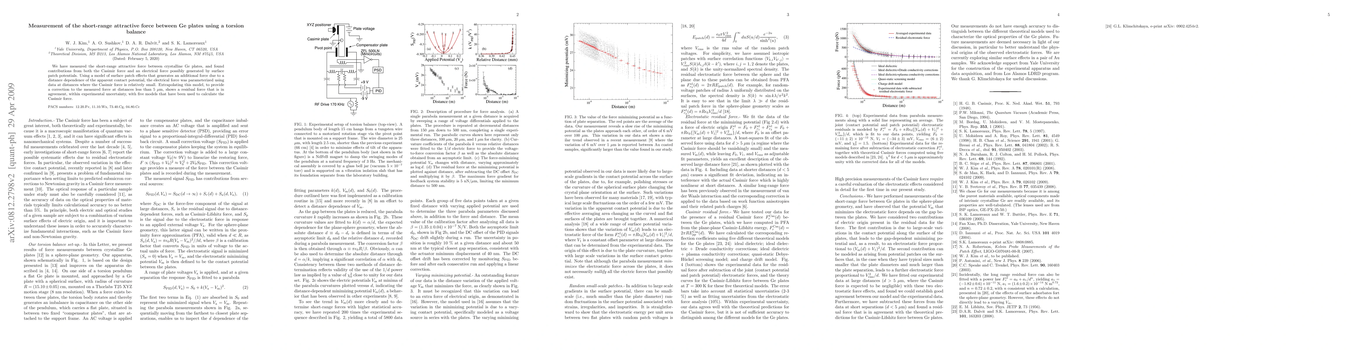 Researchers measured the short-range attractive force between Ge plates using a torsion balance, finding contributions from both Casimir and electrical forces. Extrapolation of a model corrected for these forces agrees with the Casimir force calculation at distances less than 5 μm.