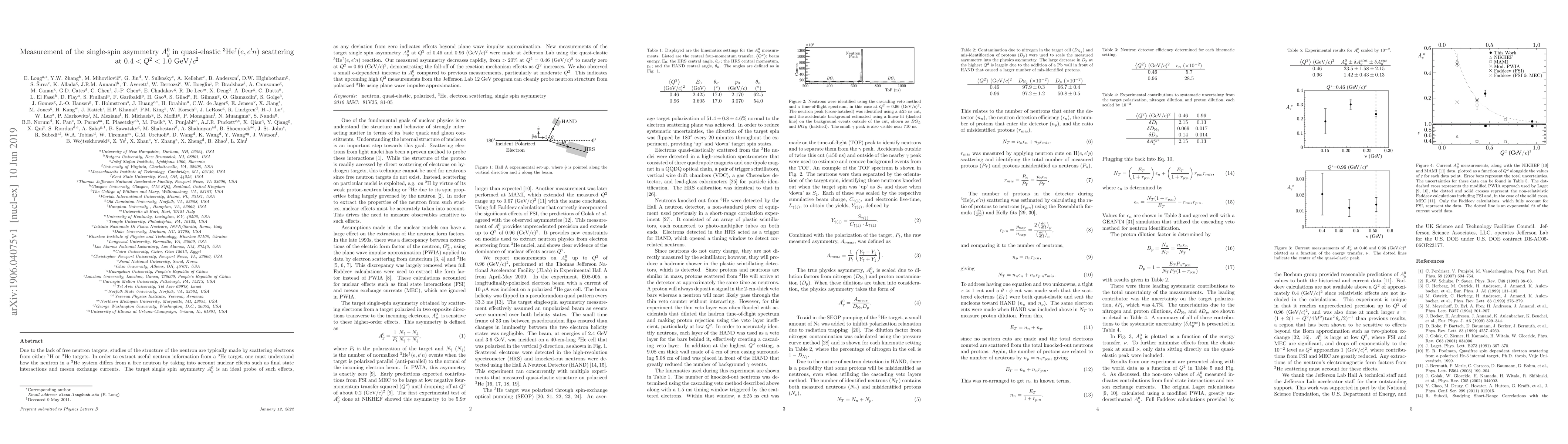Researchers measured the single-spin asymmetry in a $^3$He target during electron scattering, finding it decreased rapidly as the scattering angle increased, indicating a reduction in nuclear effects.