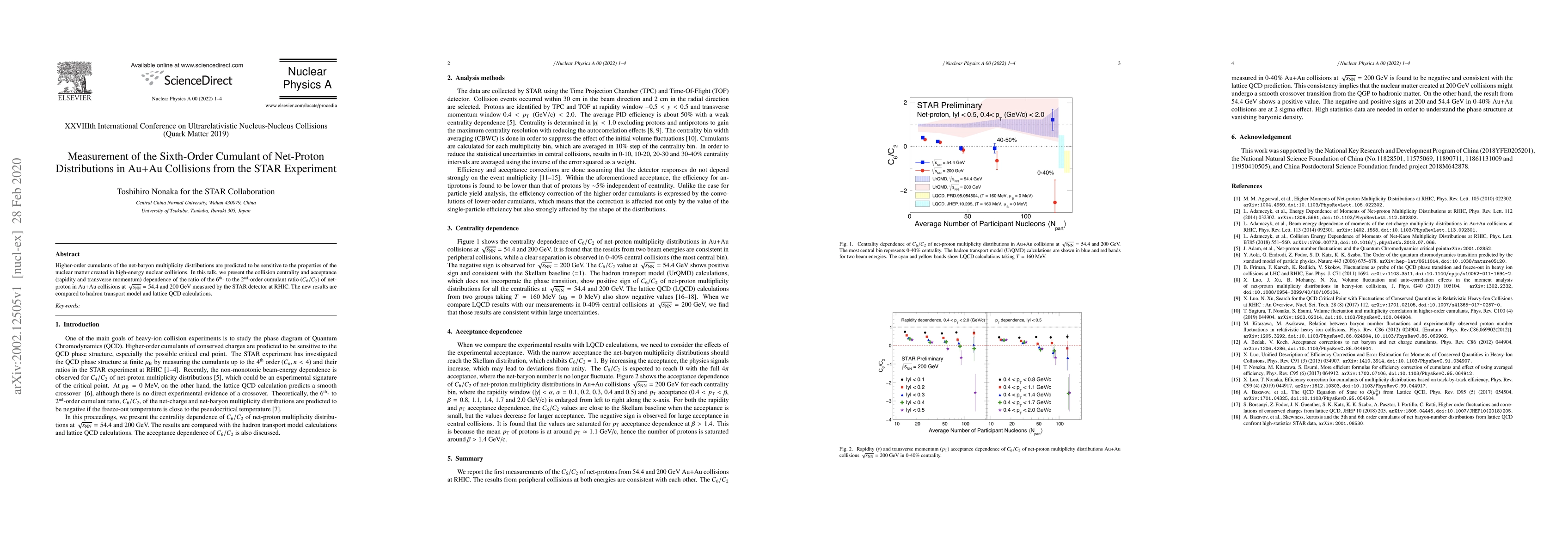 Researchers at STAR measured the 6th-order cumulant of net-proton distributions in Au+Au collisions to understand nuclear matter properties, finding dependence on centrality and acceptance.