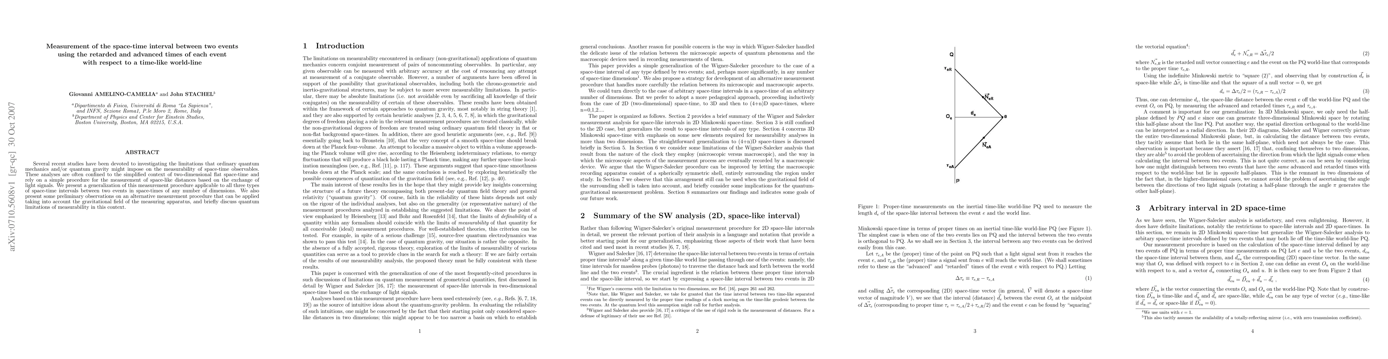This paper generalizes the measurement of space-time intervals to all three types in any dimensional space-time, moving beyond simplified two-dimensional models. It also explores an alternative measurement procedure considering gravitational fields and discusses quantum limitations on measurability.
