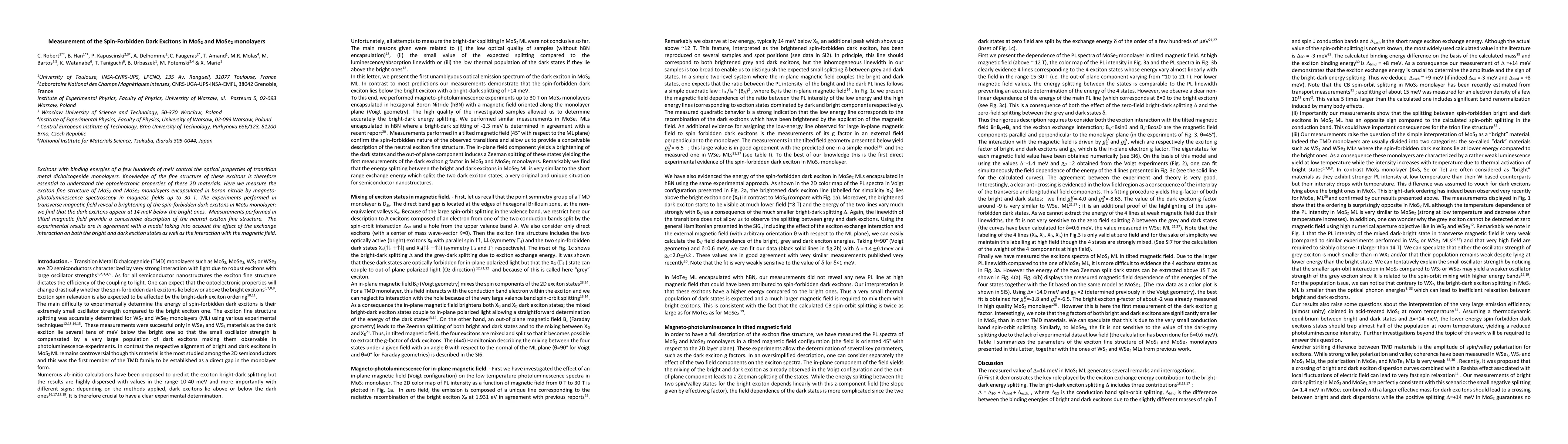 This study measures the fine structure of excitons in MoS2 and MoSe2 monolayers using magneto-photoluminescence spectroscopy, revealing that spin-forbidden dark excitons in MoS2 appear 14 meV below bright excitons. The findings align with a model considering exchange interactions and magnetic field effects.